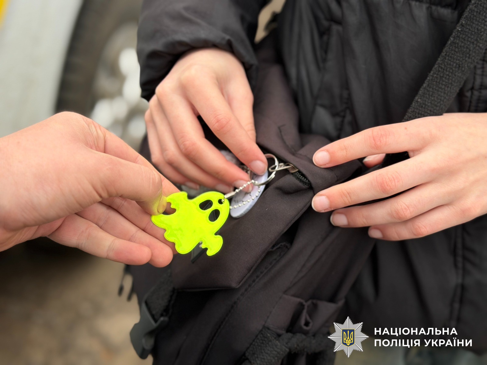 Правоохоронці дарували юним пішоходам флікери та ліхтарики, які легко кріпляться до верхнього одягу, рюкзаків, велосипедів і самокатів. При цьому пояснювали, що яскравий одяг і світловідбивачі роблять пішохода помітним та допомагають уникнути небезпечних ситуацій на дорозі.