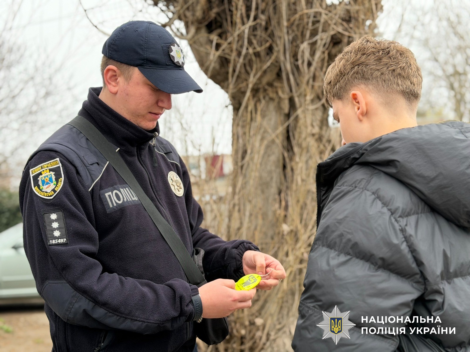 Флікер одягай — про безпеку дбай: у Баштанці поліцейські вчили дітей використовувати світловідбивні елементи