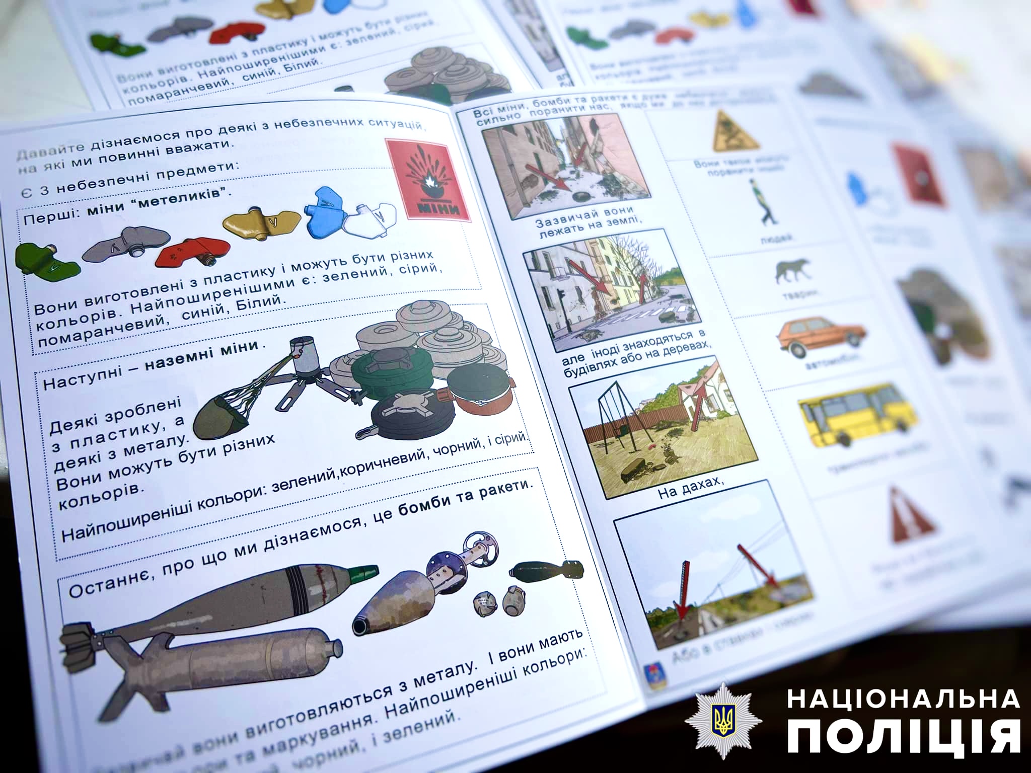 Поліцейські розповіли ліцеїстам як діяти у разі виявлення підозрілих чи вибухонебезпечних предметів. Використовуючи інформаційні буклети, показали дітям як виглядають різні види вибухівки та пояснили яку небезпеку вони несуть. Акцентували увагу, що ні в якому разі не можна небезпечну знахідку брати до рук, переносити, робити з нею інші небезпечні маніпуляції. А натомість потрібно відразу відійти подалі від неї та негайно повідомити дорослих чи зателефонувати до поліції за номер 102 або рятувальникам – 101.