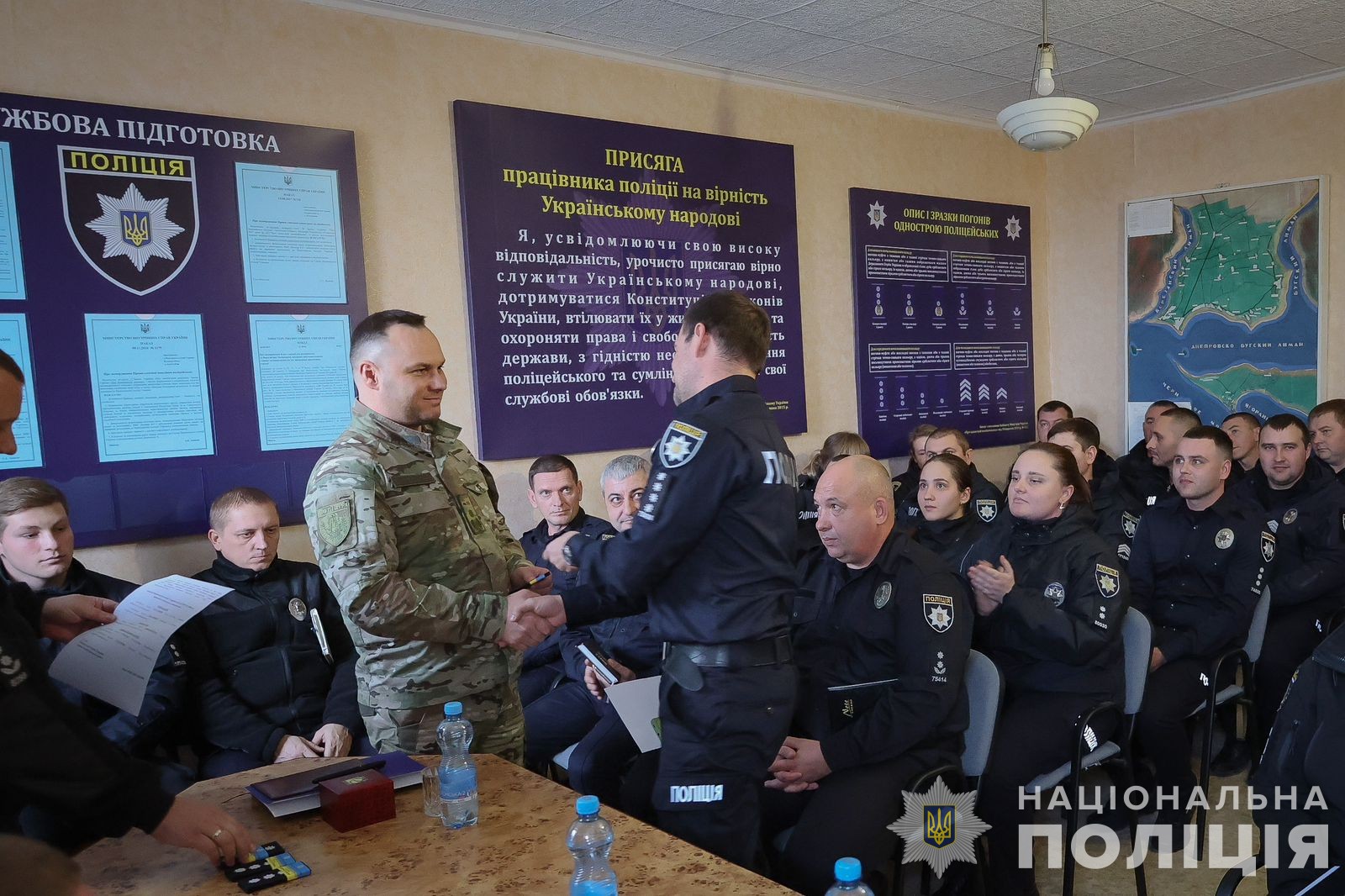Очільник відомства провів оперативну нараду за участі начальника ГУНП в Миколаївській області Сергія Махна та начальника відділення поліції № 7 Миколаївського районного управління поліції (у м. Очаків) Віталія Овсянко, перевірив умови несення служби, ознайомився з результатами роботи, заслухав про потреби та плани підрозділу. А також вручив поліцейським спеціальні звання.