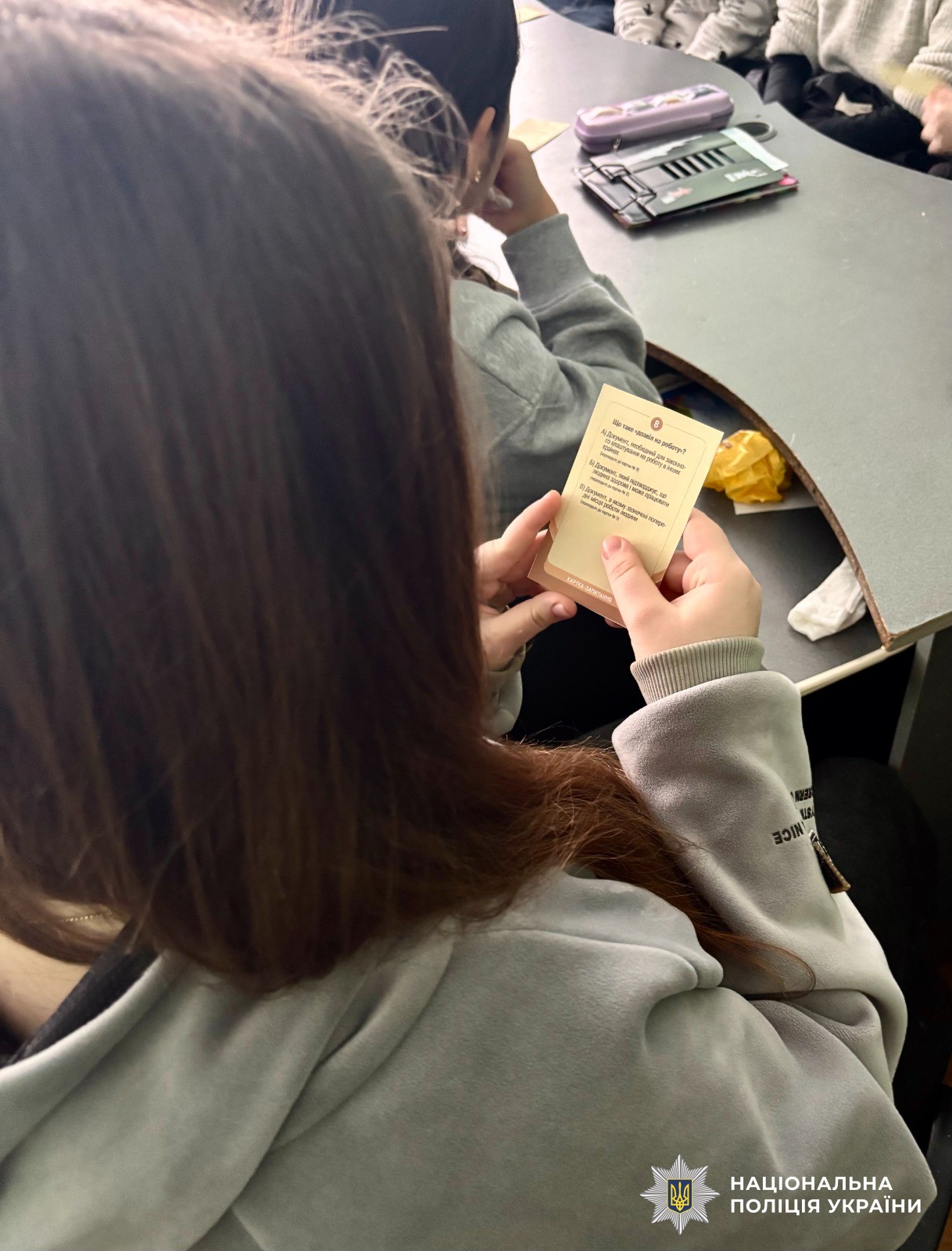 На завершення інспекторки наголосили, що у випадку, якщо хтось зазначв насильства чи став свідком інших протиправних дій, важливо не боятися повідомляти про такі факти, а одразу звертатися за допомогою до батьків, вчителів або полії, за номером - 102.