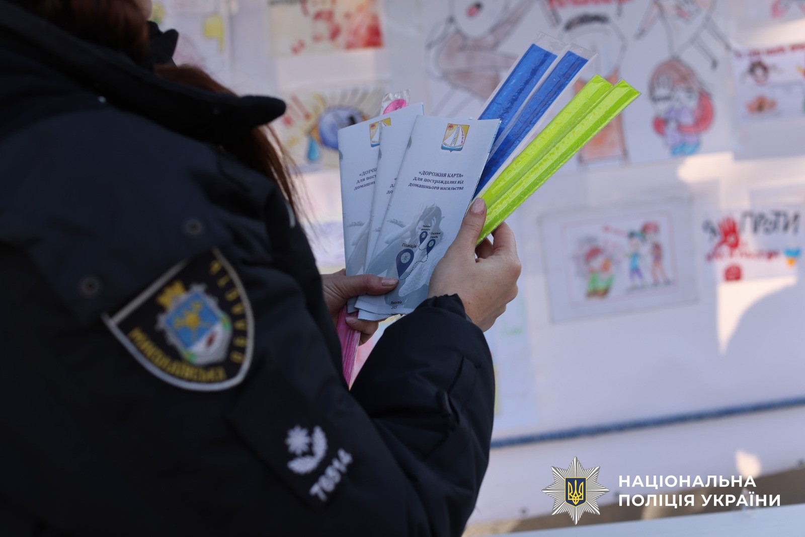 У середмісті Миколаєва, на головній вулиці, поліцейські сектору протидії домашньому насильству відділу превенції Миколаївського районного управління поліції та патрульні поліцейські за підтримки Департаменту праці та соціального захисту населення міської ради і Центру життєстійкості провели інформаційно-профілактичну акцію для містян. Правоохоронці спілкувались із миколаївцями про прояви насильства, пояснювали, як розпізнати його на ранніх стадіях, як діяти у небезпечній ситуації та куди звертатись по допомогу. Громадянам роздавали інформаційні буклети з покроковими порадами та контактами служб підтримки.