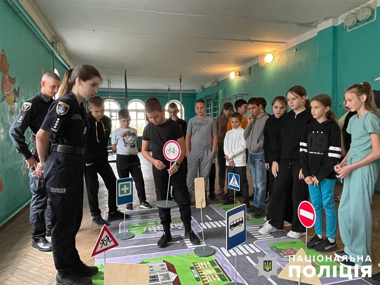 Інтерактивне ігрове заняття щодо дотримання Правил дорожнього руху та мінної безпеки з учнями Радсадівського ліцею провели ювенальні поліцейські.
