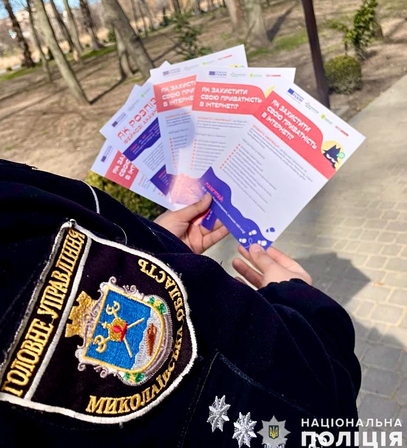 Інспекторка ювенальної превенції Первомайського райвідділу поліції Ганна Іщенко, спілкуючись із юними мешканцями райцентру, розповідала про важливість дотримання заходів безпеки в мережі, щоб вберегти свою приватність та не стати жертвою протиправних дій онлайн-зловмисників, зокрема: