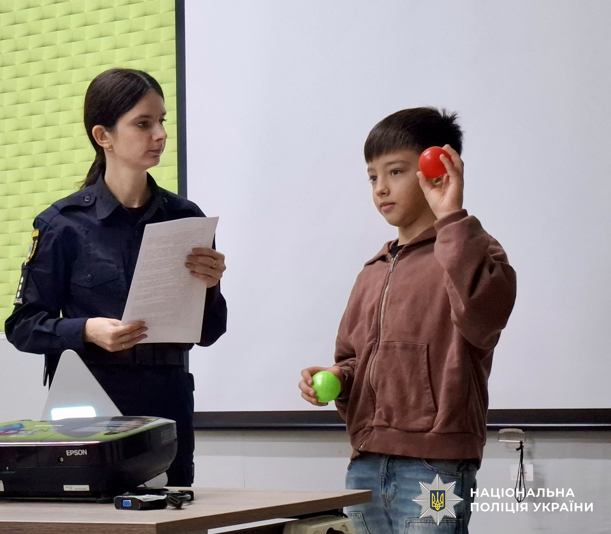 Отримані знання діти закріпили переглядом навчального відео та проведенням інтерактивної гри «Сигнальник», під час якої вирішували різні ситуаційні завдання, повʼязанні із торгівлею людьми, разом обговорювали причини їх виникнення та шукали шляхи подолання. На завершення поліцейська закликала дітей завжди бути уважними та обережними при спілкуванні із незнайомцями, не повідомляти їм свої особисті дані, не виконувати протиправних вказівок, не терпіти та не мовчати про знущання та жорстоке поводження.