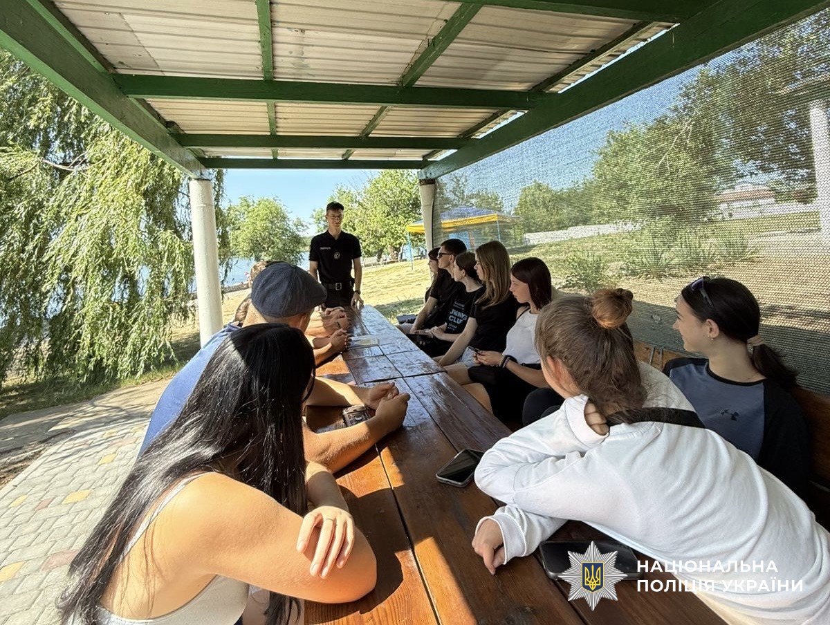 Канікули без турбот і ризиків: у дитячому таборі поліцейський закликав дітей дотримуватись правил поводження на водоймах
