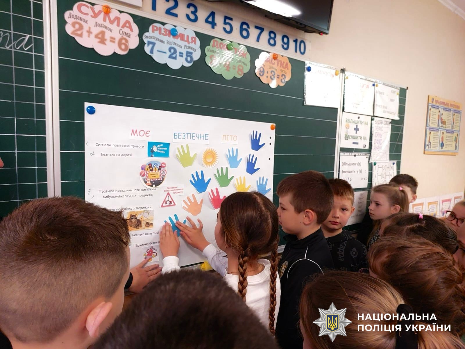 Офіцерка служби освітньої безпеки Вознесенського райуправління поліції для вихованців Вознесенської гімназії імені Тараса Шевченка провела пізнавальний урок на тему «Моє безпечне літо».