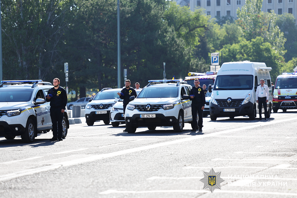 Єдиним строєм у скорботі й вдячності стали поліцейські, рятувальники, військовослужбовці Національної гвардії, прикордонники, представники міграційної та сервісної служб.