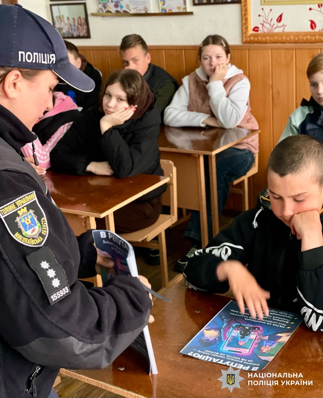 Про важливість дотримання цифрової безпеки, вміння розпізнавати загрози та вчасно звертатися по допомогу учням 7-9 класів Доброжанівської гімназії Врадіївської селищної ради розповіла ювенальна інспекторка Первомайського райвідділу поліції Ганна Іщенко.
