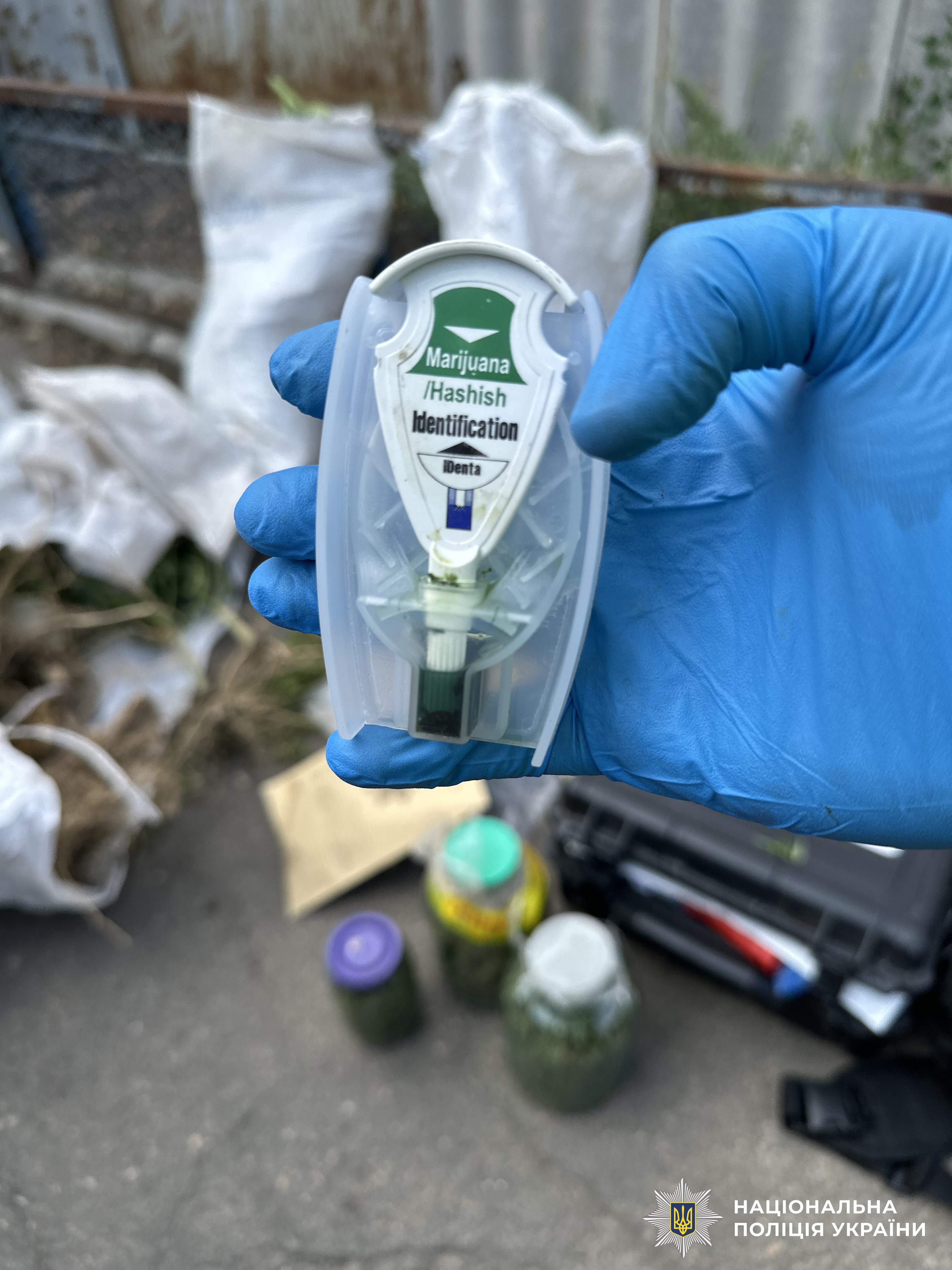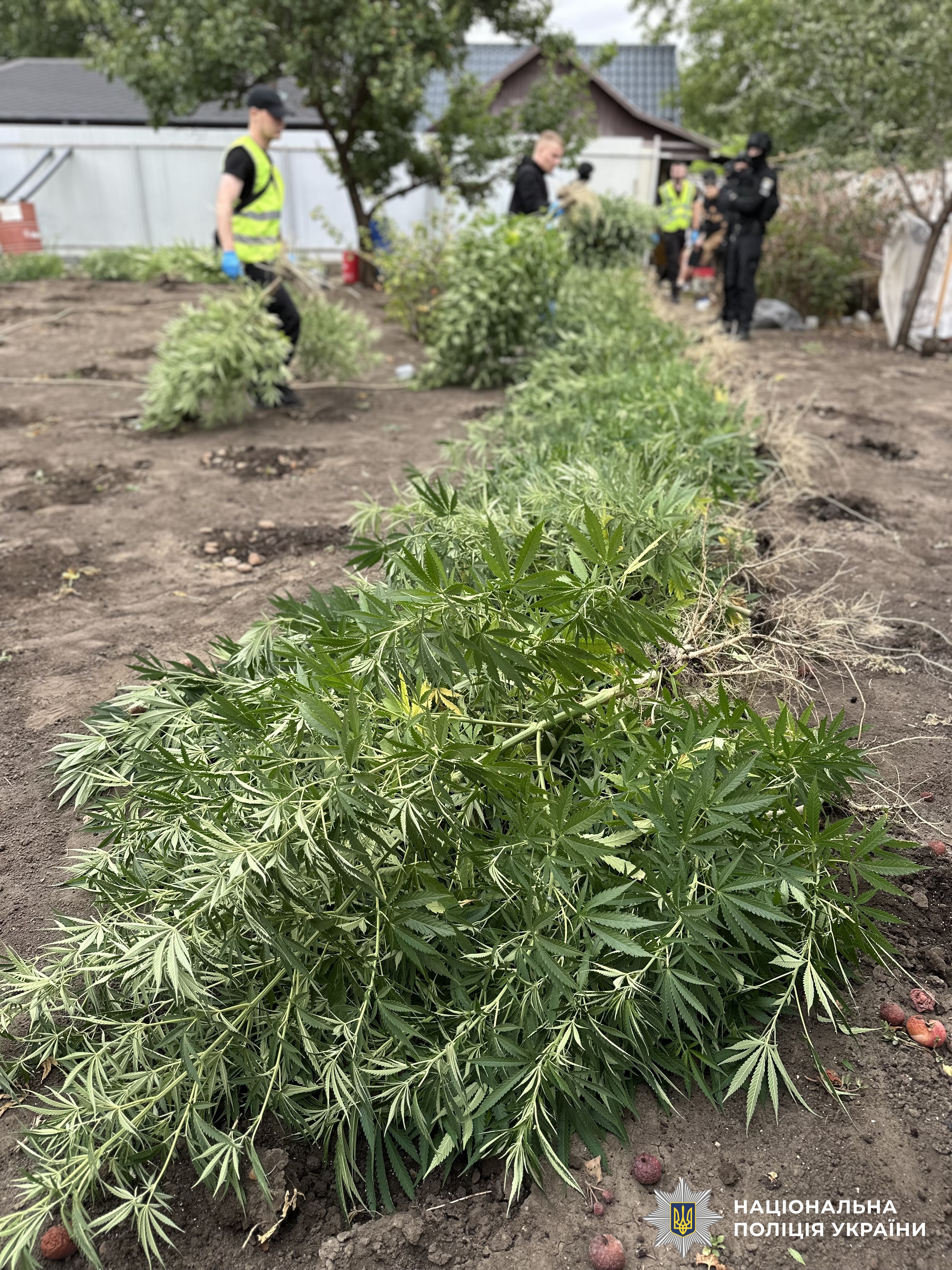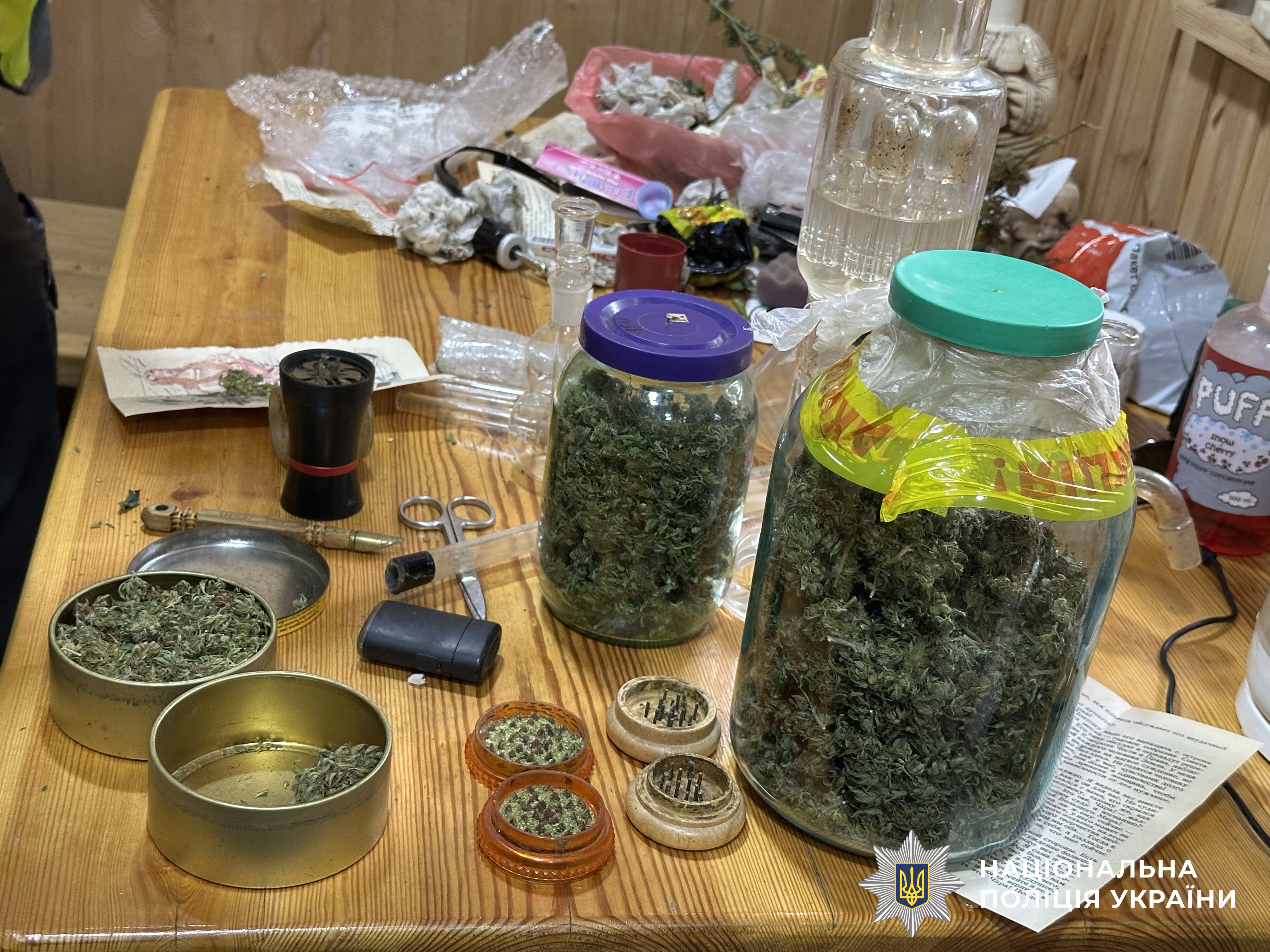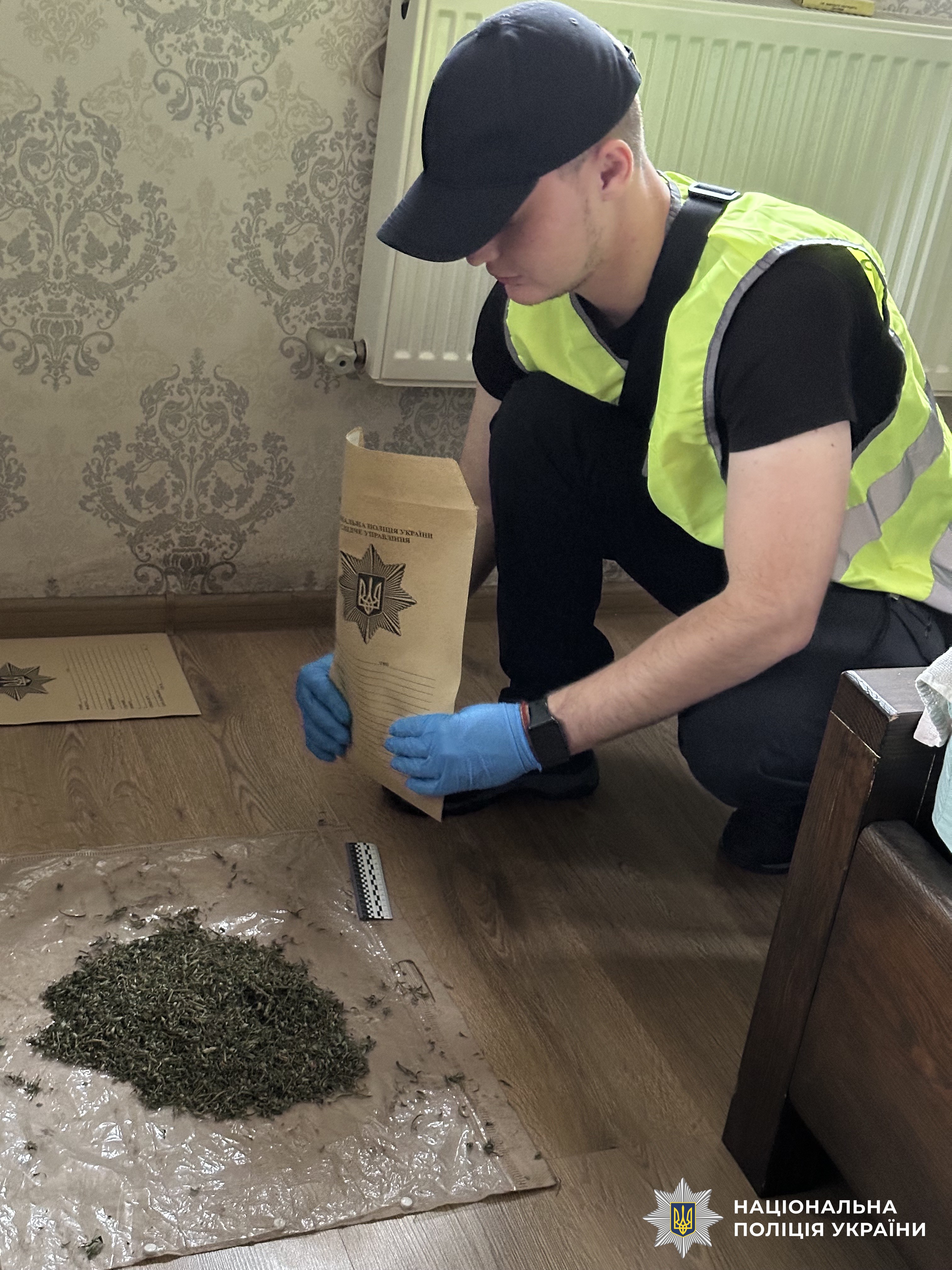 У ході санкціонованого обшуку поліцейські виявили та вилучили 202 кущі коноплі, у будинку та господарчих спорудах пакунок, три скляні банки з подрібненою і висушеною речовиною рослинного походження зеленого кольору, готовою для вживання та пристрої для куріння. Частину рослин чоловік сушив просто під стелею.