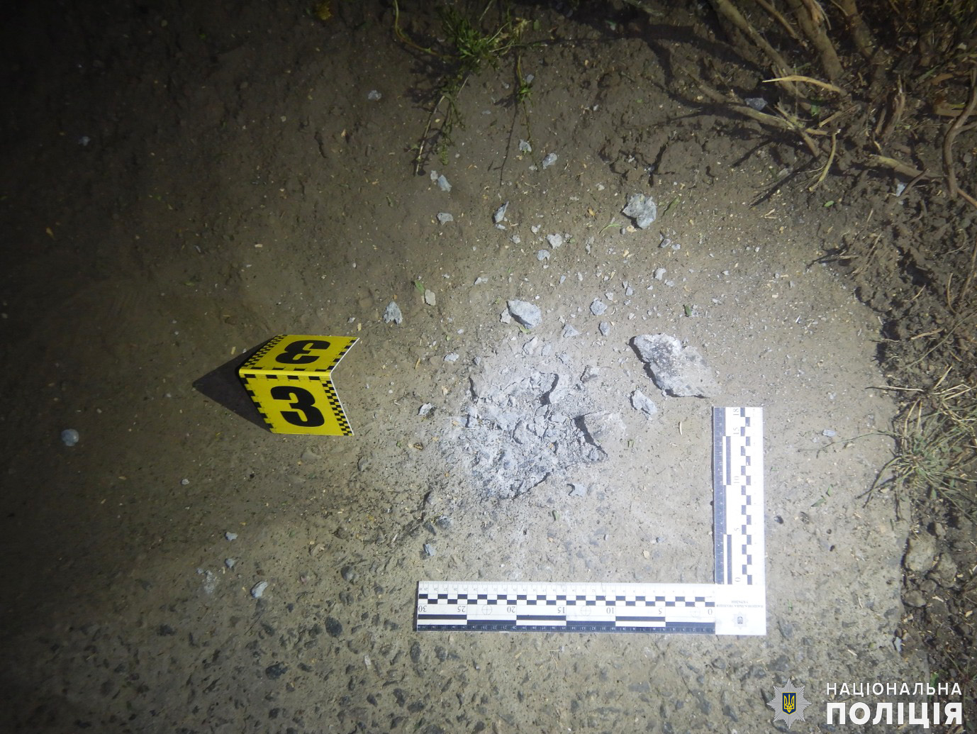 Під час огляду місця події правоохоронці зафіксували вирву на бетонній основі дороги, уламки від ручної гранати та важіль до неї.