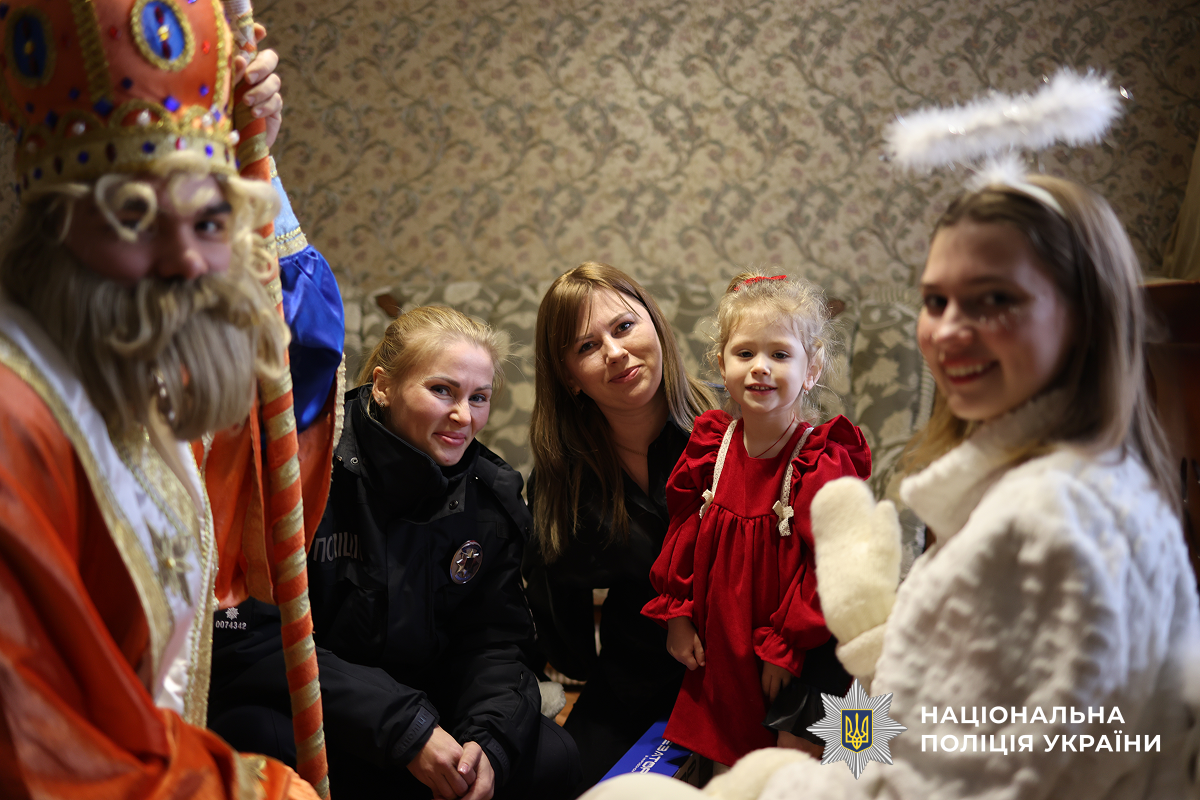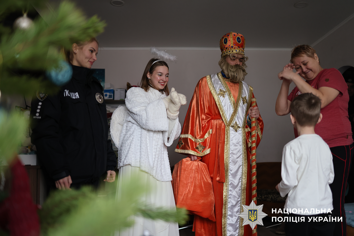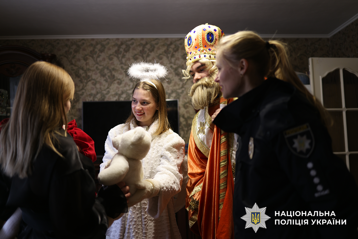 Разом зі Святим Миколаєм та ангелом інспектори ювенальної превенції завітали до юних адресатів із щирими привітаннями та подарунками, здійснивши їхні маленькі мрії. Кожна зустріч була сповнена тепла, щирих усмішок і віри в новорічне диво. Діти з радістю приймали подарунки, розповідали вірші Святому Миколаю, а правоохоронці ділилися гарним настроєм та святковими побажаннями.