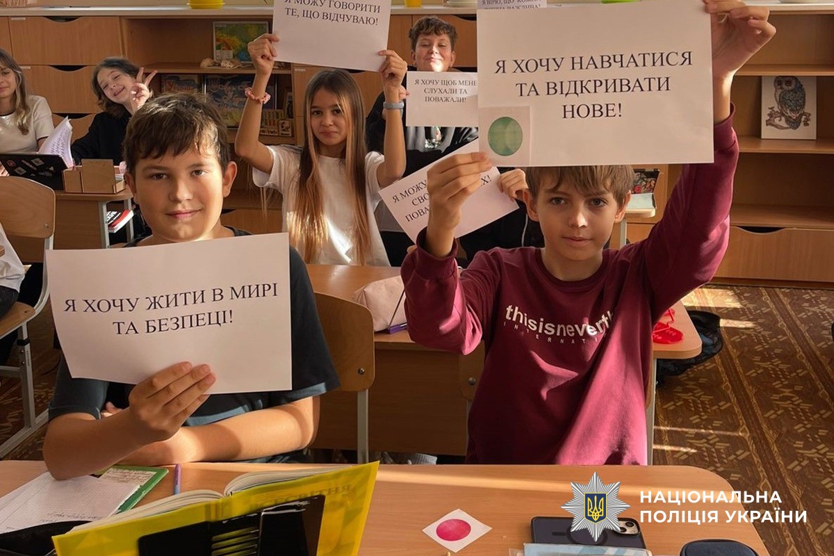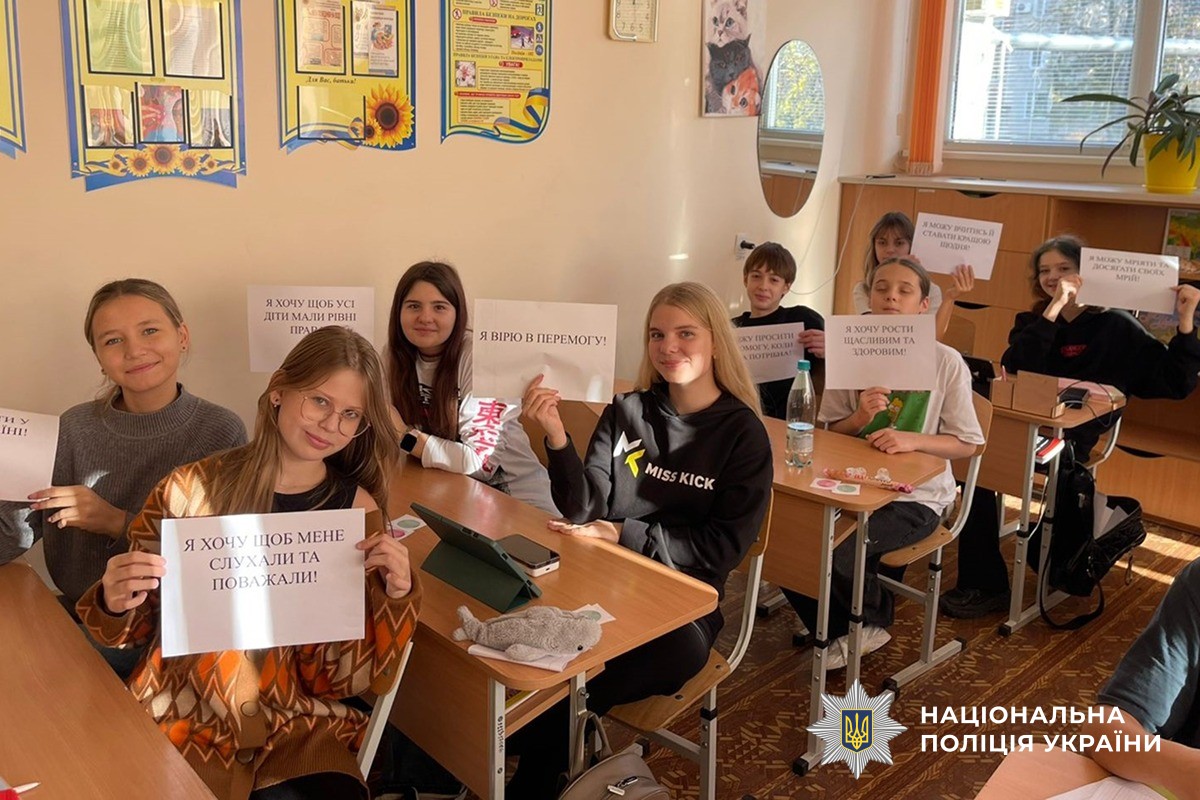 Виховну годину для учнів 7-х класів Південноукраїнського ліцею № 5 у рамках відзначення Всесвітнього дня дитини провела інспектор сектору служби освітньої безпеки Вознесенського районного управління поліції Юлія Страхова.