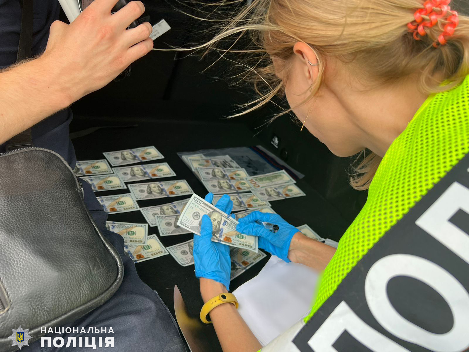 Після передачі правоохоронцю першої частини хабара у сумі 12 500 доларів поліцейські затримали 64-річного фігуранта у порядку ст. 208 КПК України.