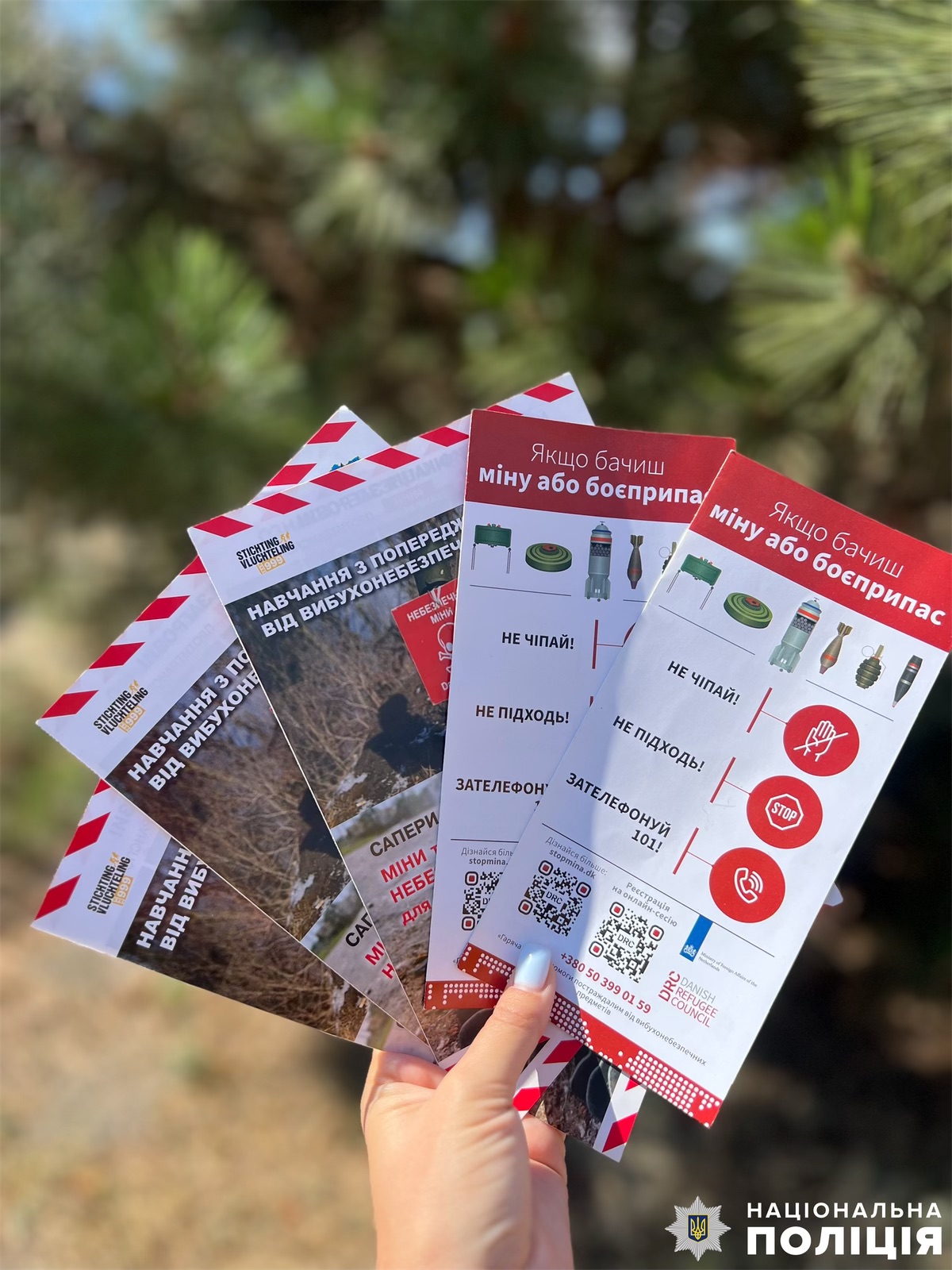 Поліцейські наголошували, що до обстеження територій відповідними фахівцями, забороняється відвідування полів, луків, лісопосадок, користування узбіччями доріг та шляхами поза межами автотрас, також забороняється відвідування незнайомих місць, територій там, де велися бойові дії або зазнали ворожих ударів (авіа-, артобстрілів), місць, де переміщувалися та дислокувалися окупаційні війська.
