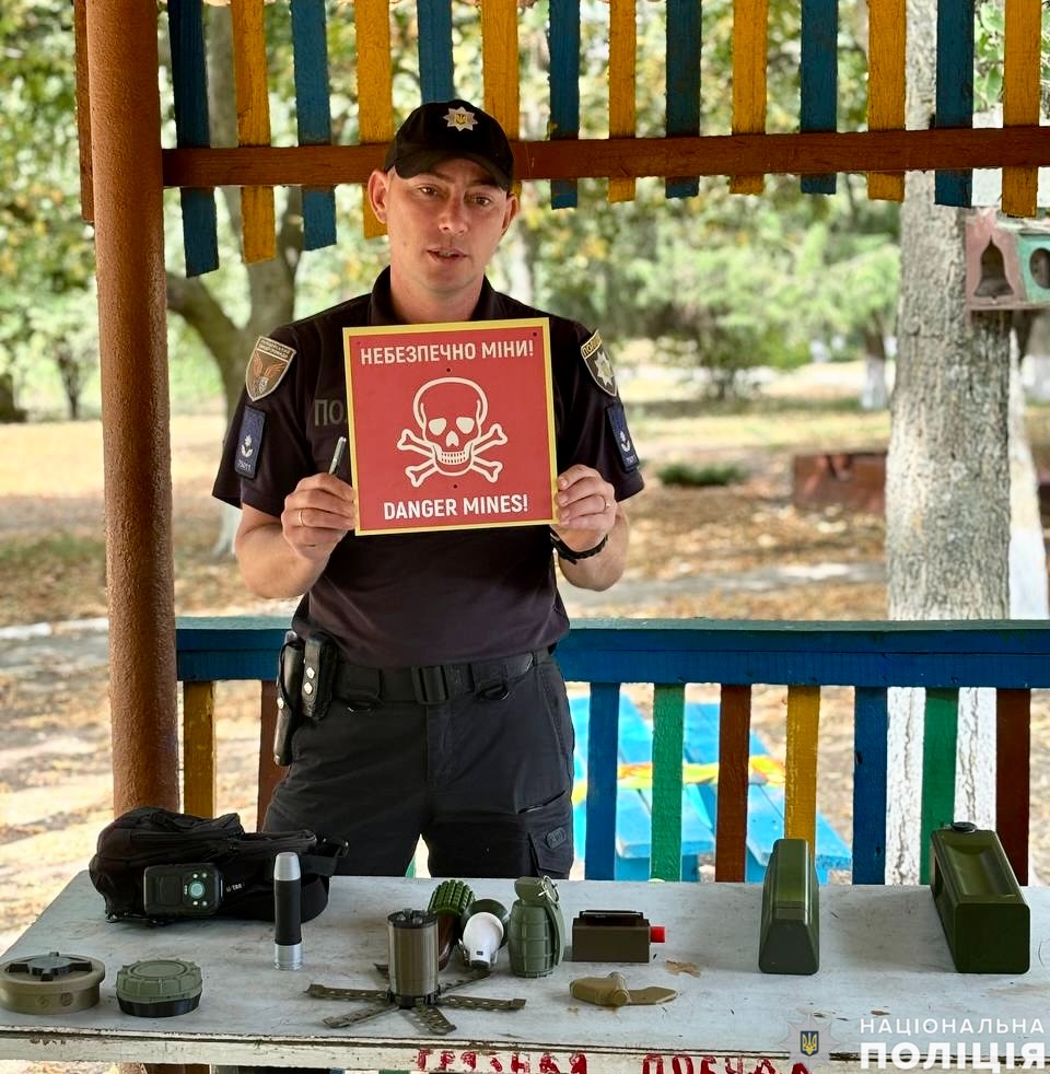 Мінна безпека та правила поводження під час надзвичайної ситуації: на Вознесенщині шериф поліції провів пізнавальне заняття для дітей