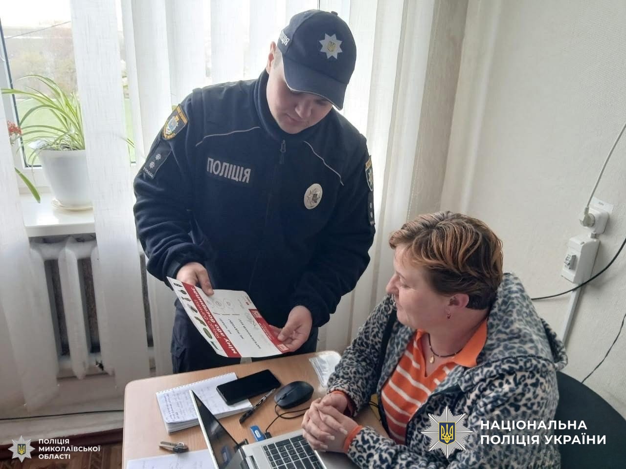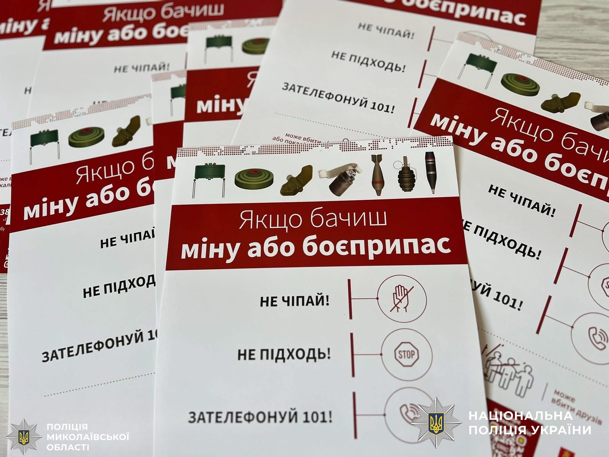Використовуючи спеціальні брошури, поліцейські Баштанського райвідділу демонстрували місцевим жителям, як виглядають снаряди, міни, гранати та набої. Пояснювали їхню небезпеку та навчали алгоритму дій у разі виявлення вибухонебезпечних предметів.