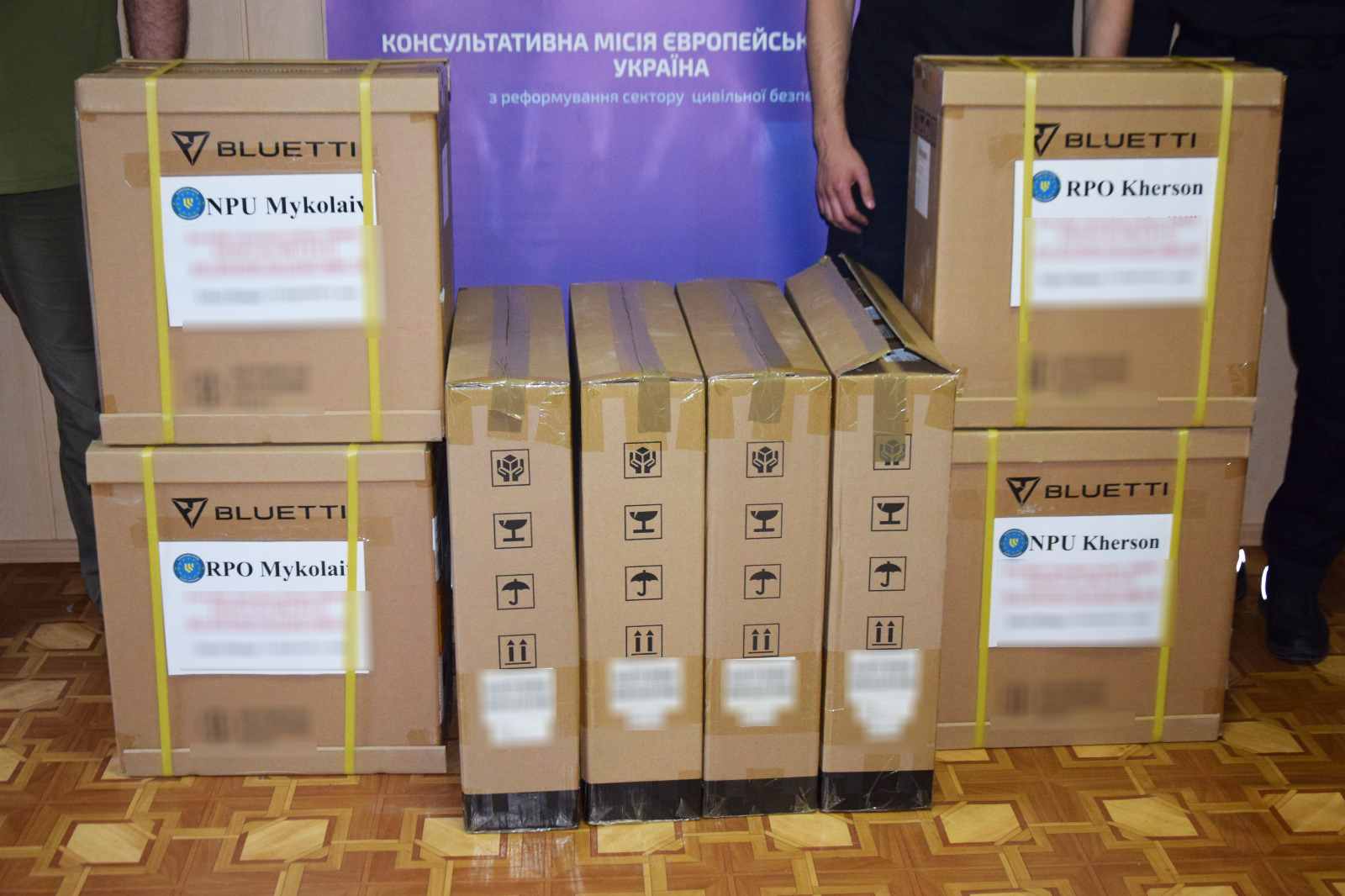 Представники Консультативної місії Європейського Союзу (КМЄС) в Україні з реформування сектору цивільної безпеки передали криміналістам поліції Миколаївщини сонячні панелі та портативні батареї.
