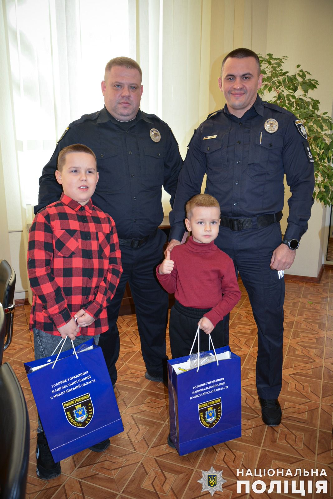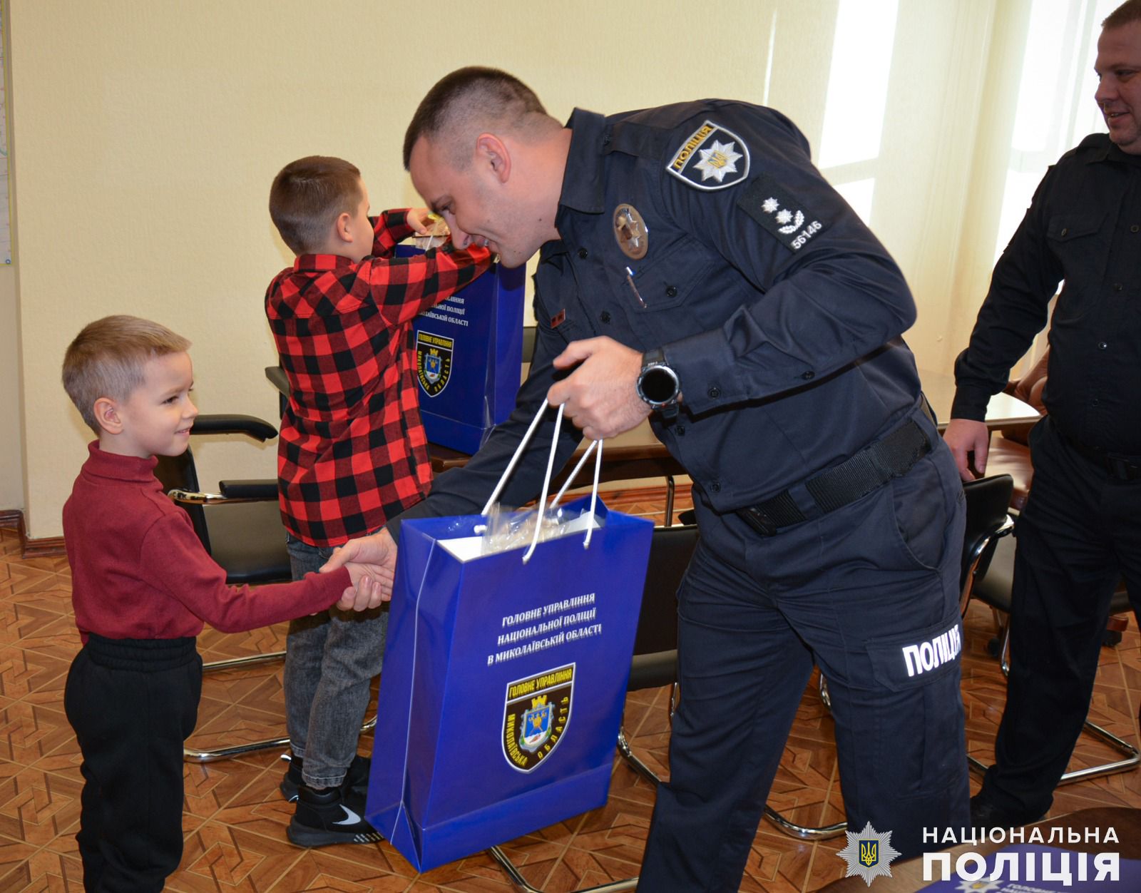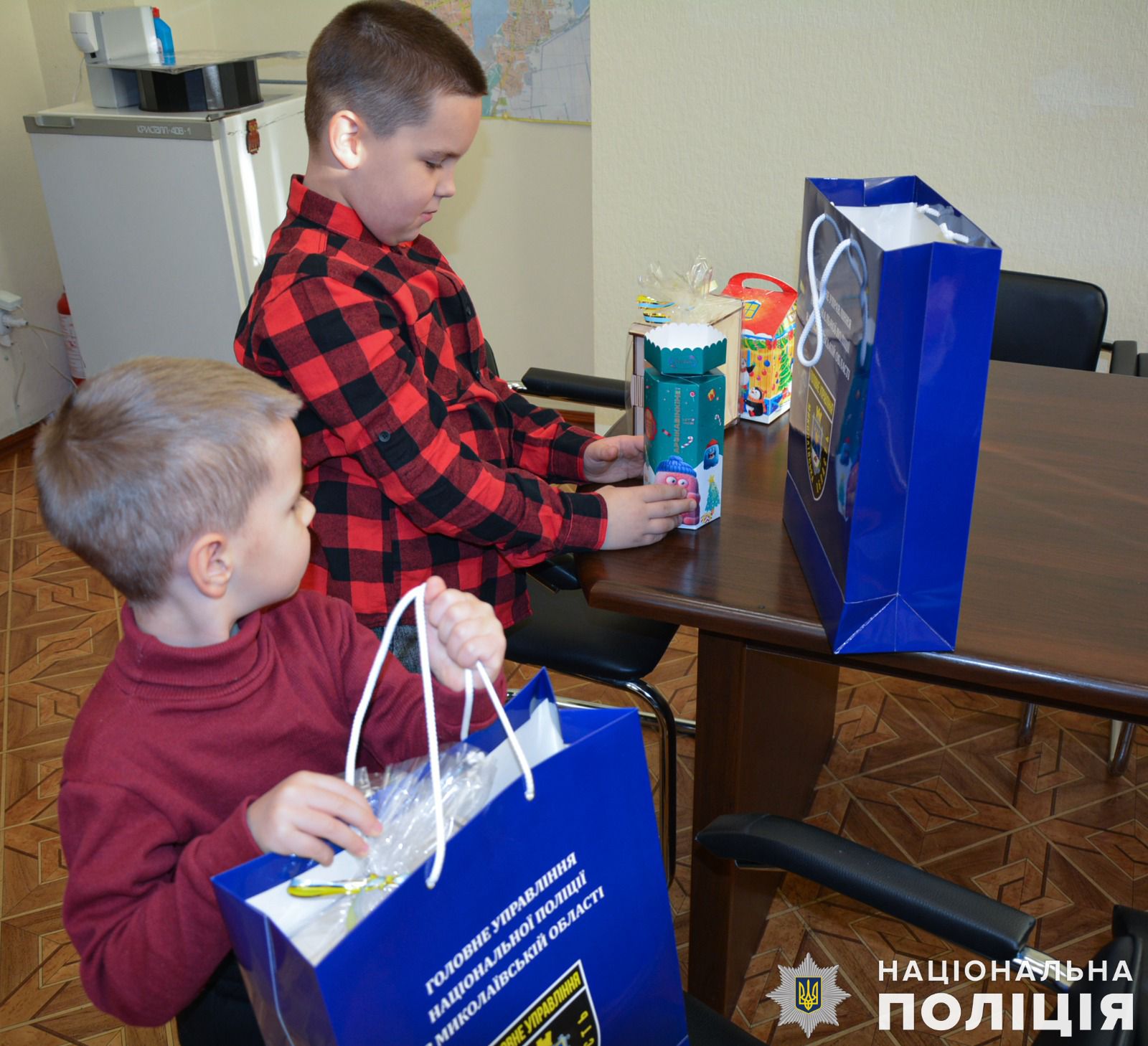 Сьогодні, 27 грудня, начальник управління кадрового забезпечення поліції Миколаївщини Олег Ключко вітав синів загиблих поліцейських Юрія Кравченка та Ярослава Лук’яненка солодкими подарунками з прийдешніми святами.