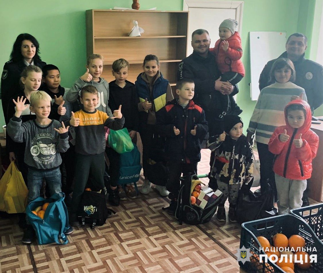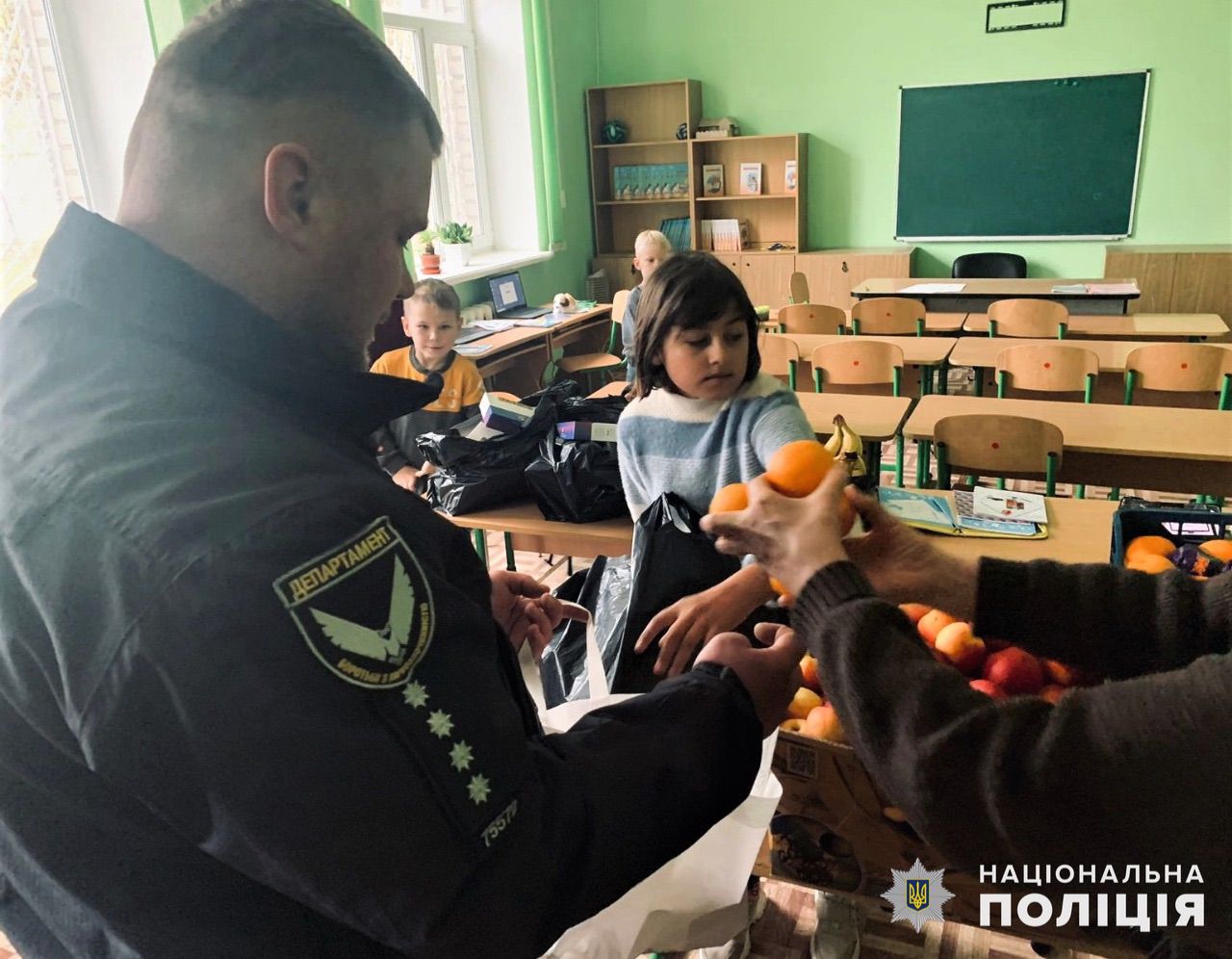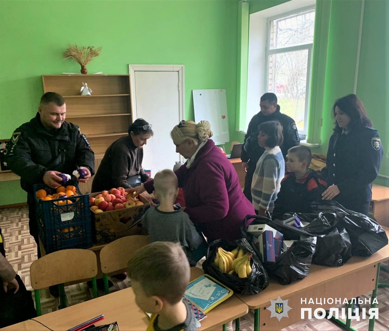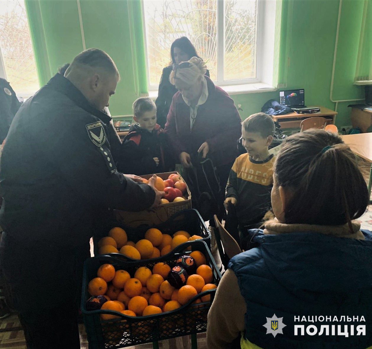 Правоохоронці привезли дітлахам фрукти, солодощі та багато інших подарунків.
