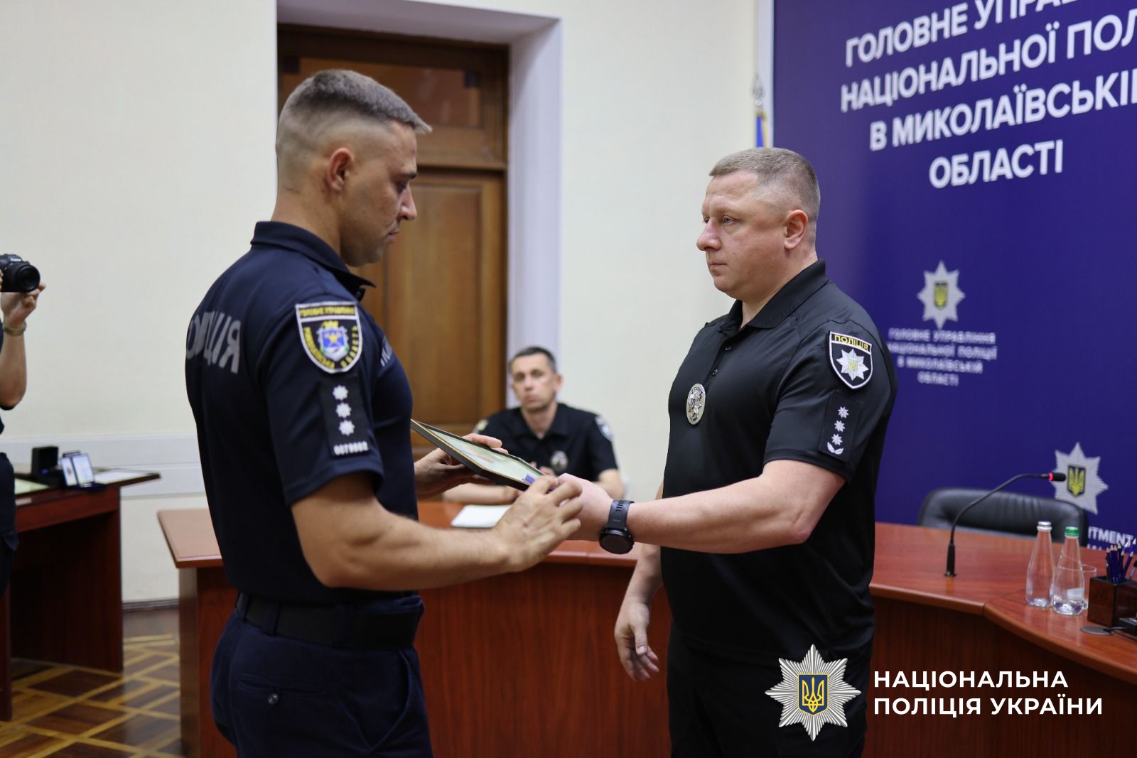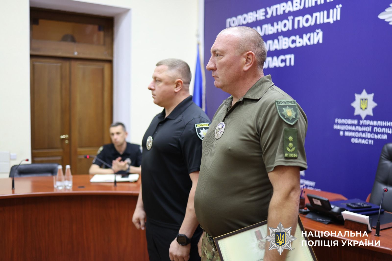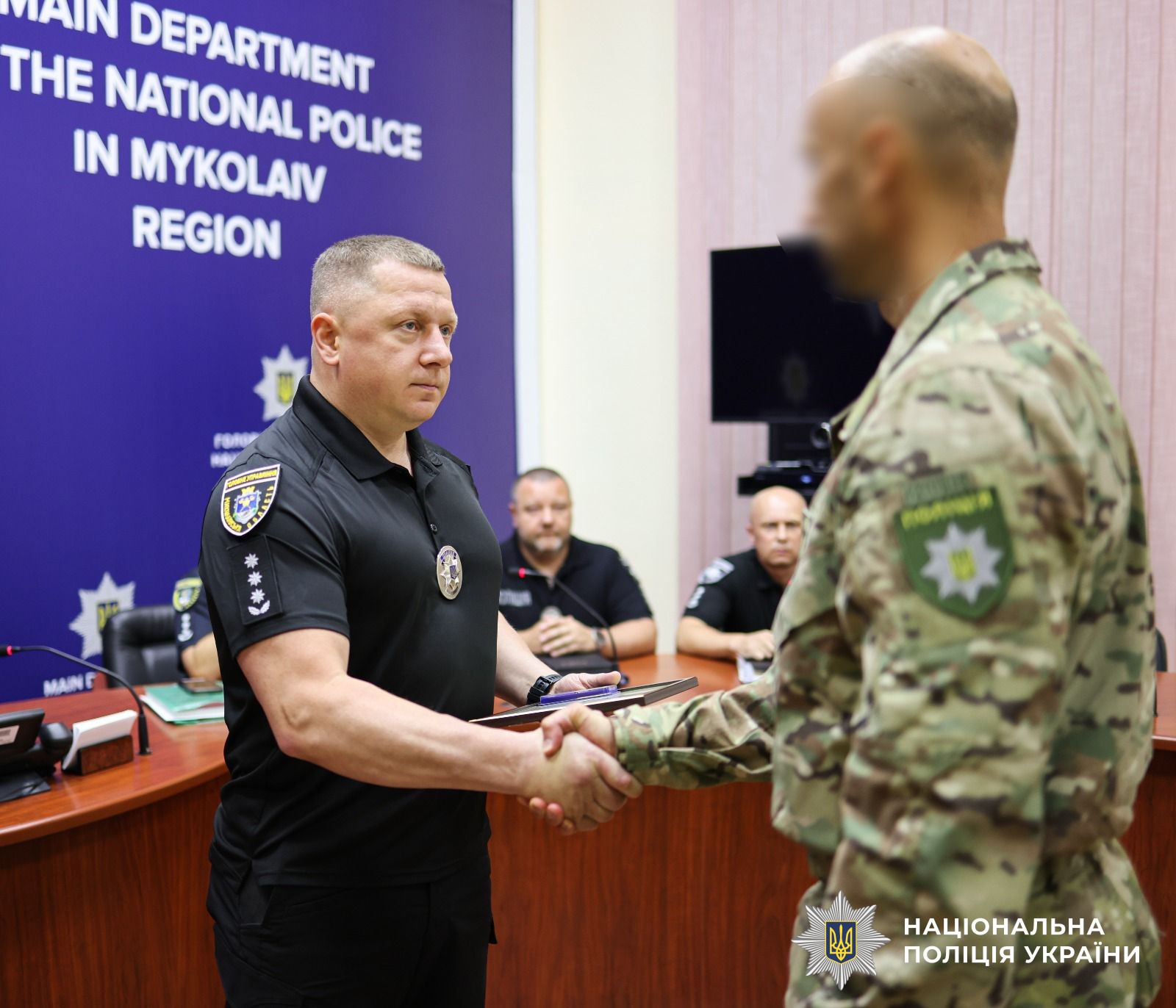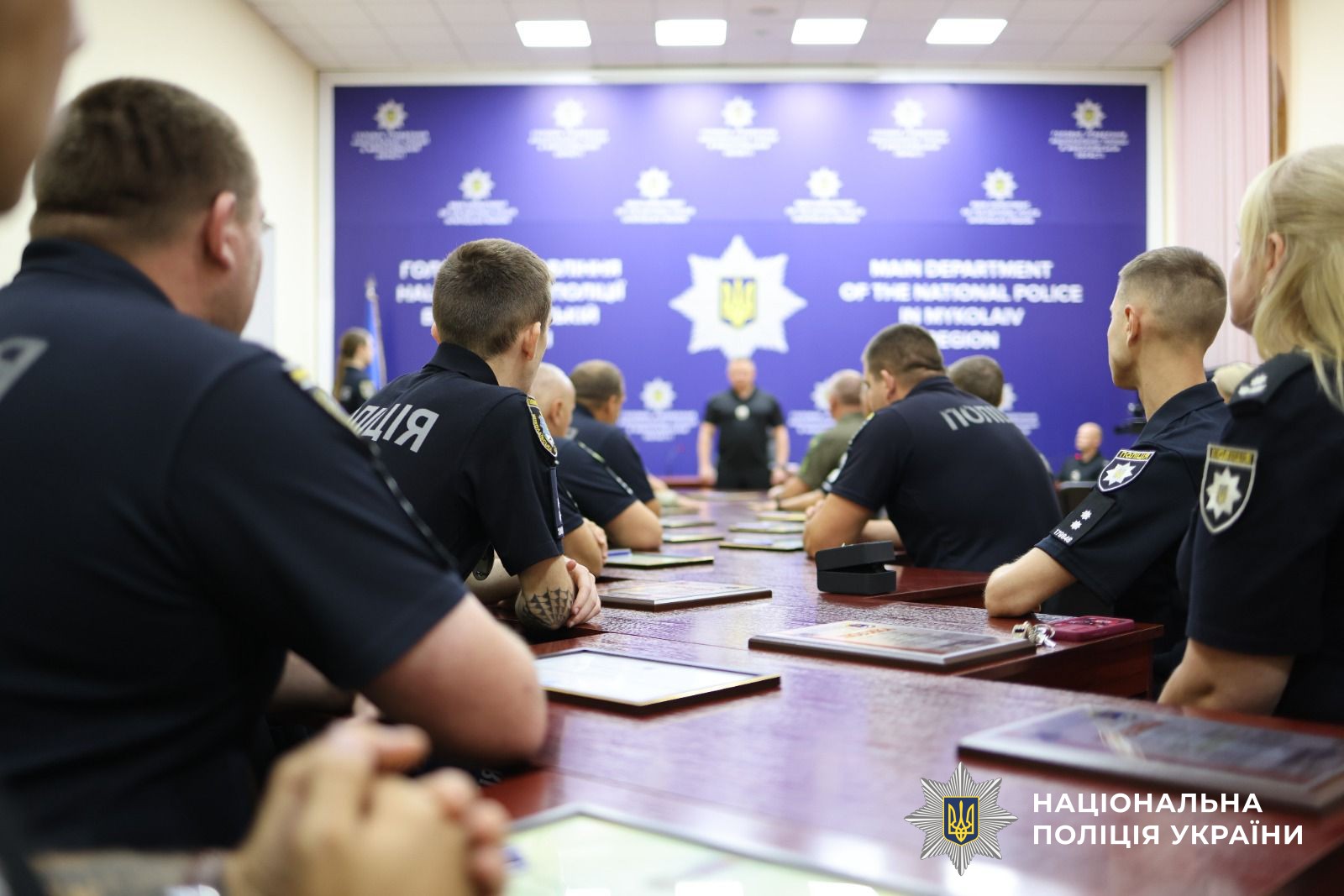 Начальник обласного главку поліції Миколаївщини Сергій Махно вручив державні нагороди бійцям спецпідрозділу КОРД, роти поліції особливого призначення, управління вибухотехнічної служби та співробітникам територіальних підрозділів.