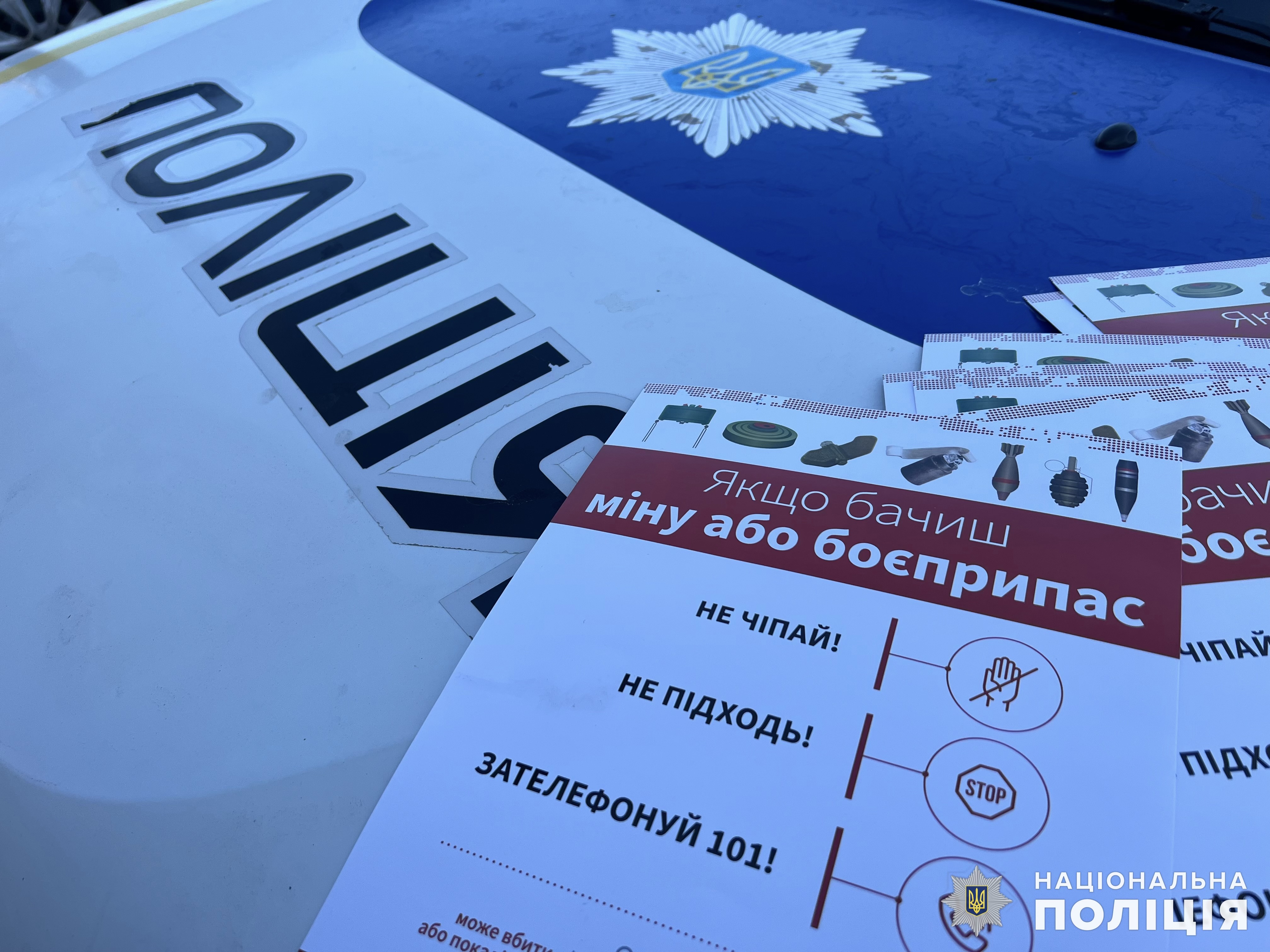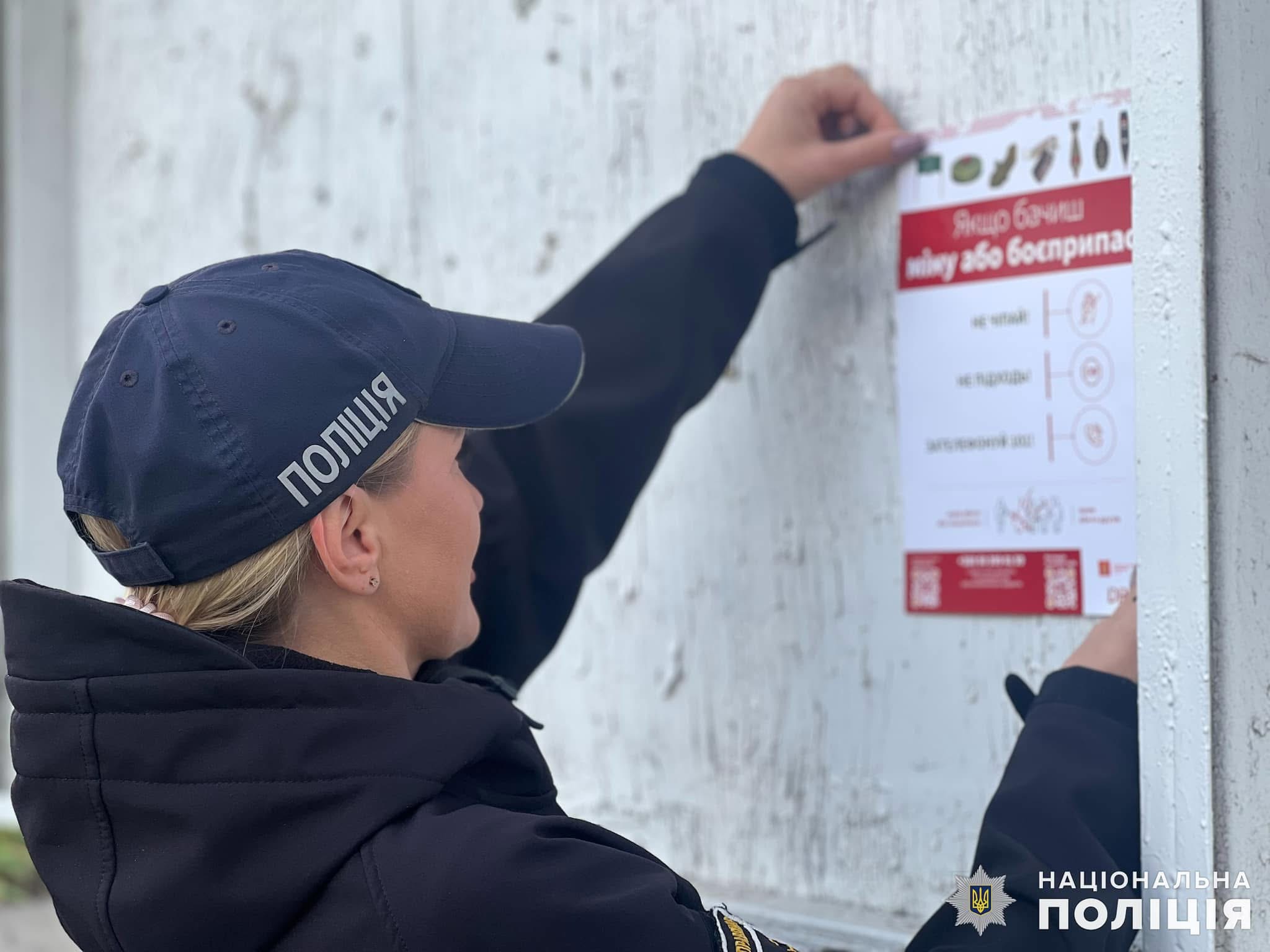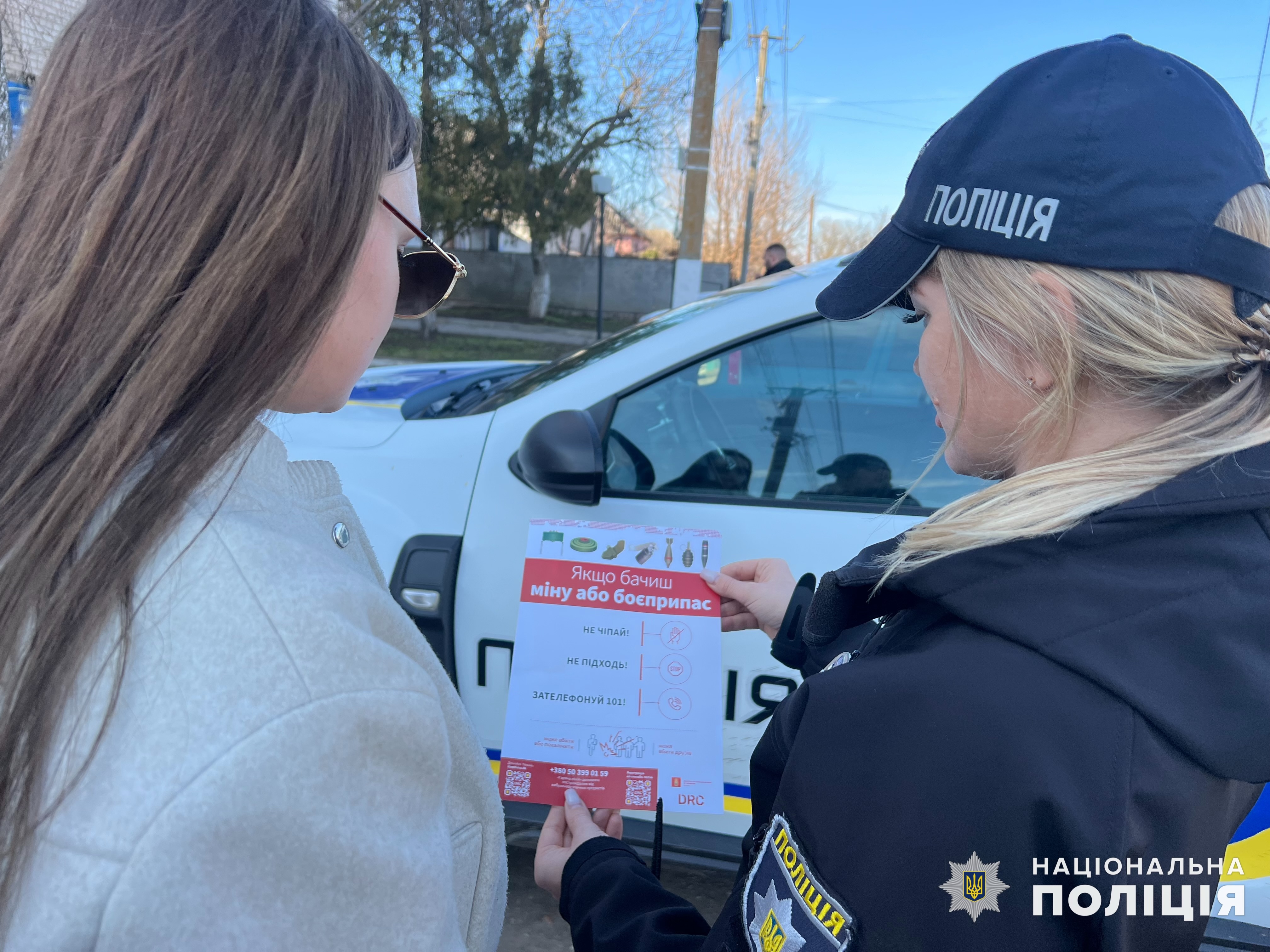 За допомогою спеціальних плакатів поліцейські Баштанського райвідділу поліції демонстрували місцевим жителям як виглядають снаряди, міни, гранати, набої. Разом з тим розповідали яку небезпеку вони становлять і навчали як діяти, якщо натрапили на вибухонебезпечний предмет.