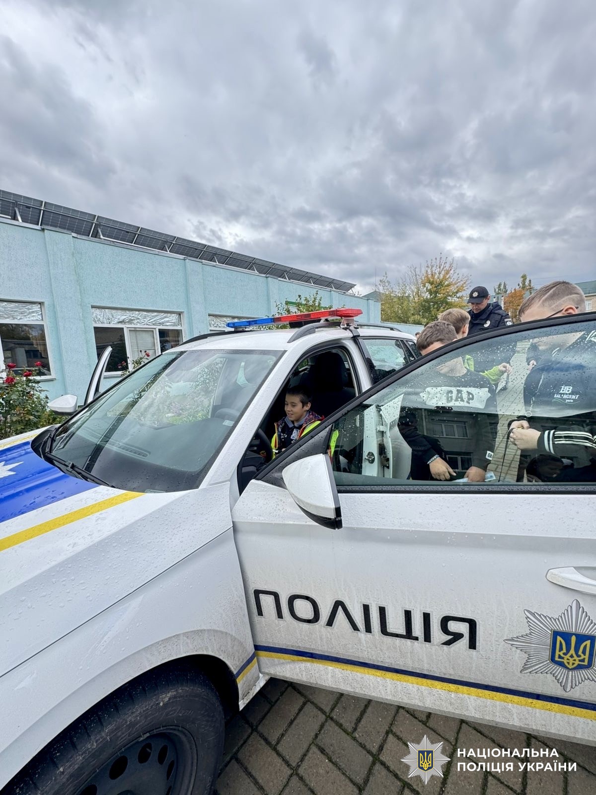 Наприкінці зустрічі учні з великим задоволенням оглядали службовий автомобіль та цікавилися роботою правоохоронців.