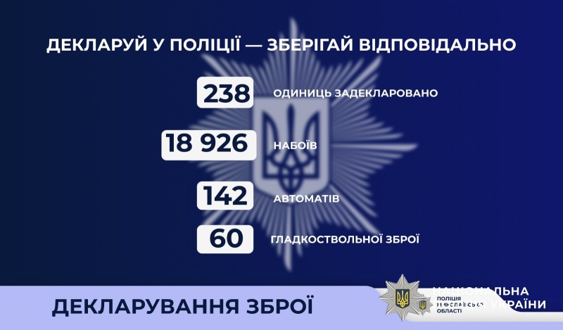 Від початку декларування вогнепальної зброї до секторів контролю за обігом зброї поліції Миколаївщини звернулись 216 громадян, які задекларували 238 одиниць зброї та майже 19 тисяч набоїв до неї, з них: 142 автомати, 18 карабінів, 18 пістолетів та 60 одиниць гладкоствольної зброї .