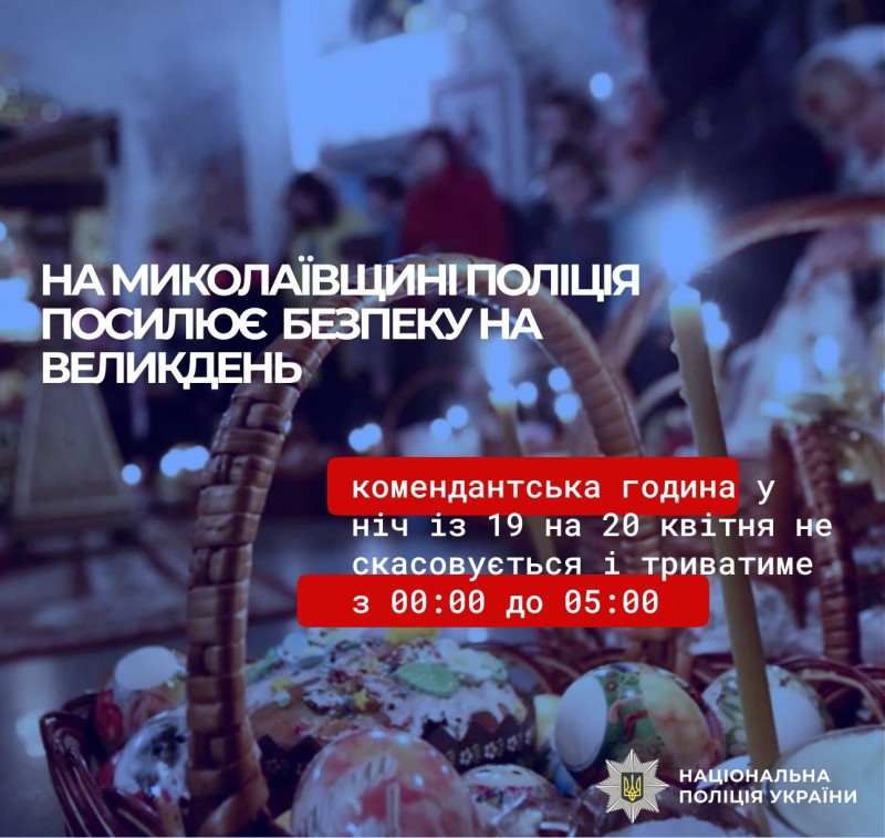 У неділю, 20 квітня, християни східного та західного обряду відзначатимуть свято Світлого Воскресіння Христового. У зв’язку з цим поліція Миколаївщини залучає додаткові сили для забезпечення правопорядку.