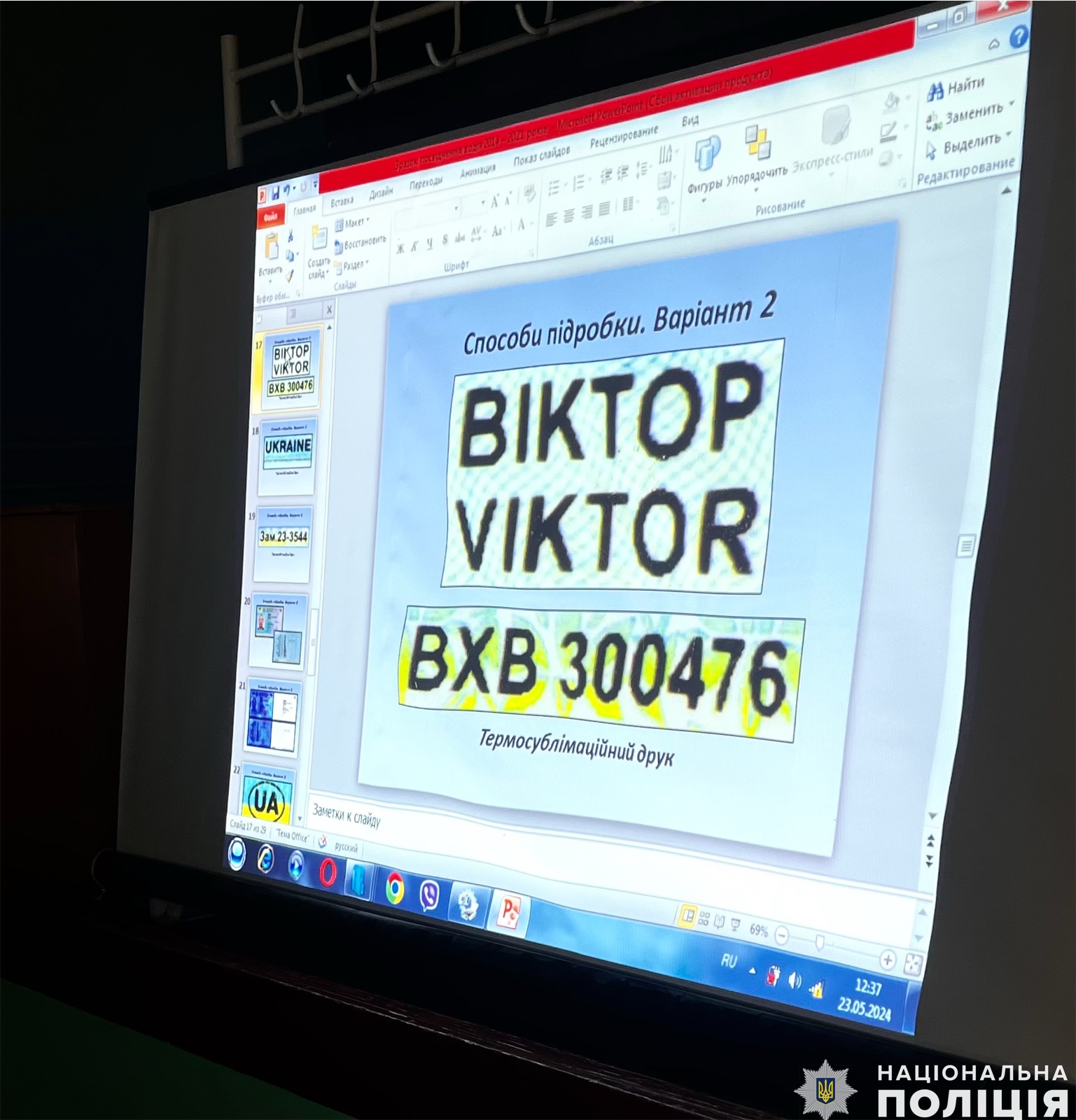 Заняття проводилися разом із співробітниками відділу дізнання та управління превентивної діяльності обласного главку поліції. Правоохоронці вивчали, які можуть мати ознаки підробки посвідчення водія та реєстраційні документи на транспортний засіб. Також приділили увагу елементам захисту офіційних паперів і основним способам їх підробки, та як діяти у разі виявлення факту підробки.
