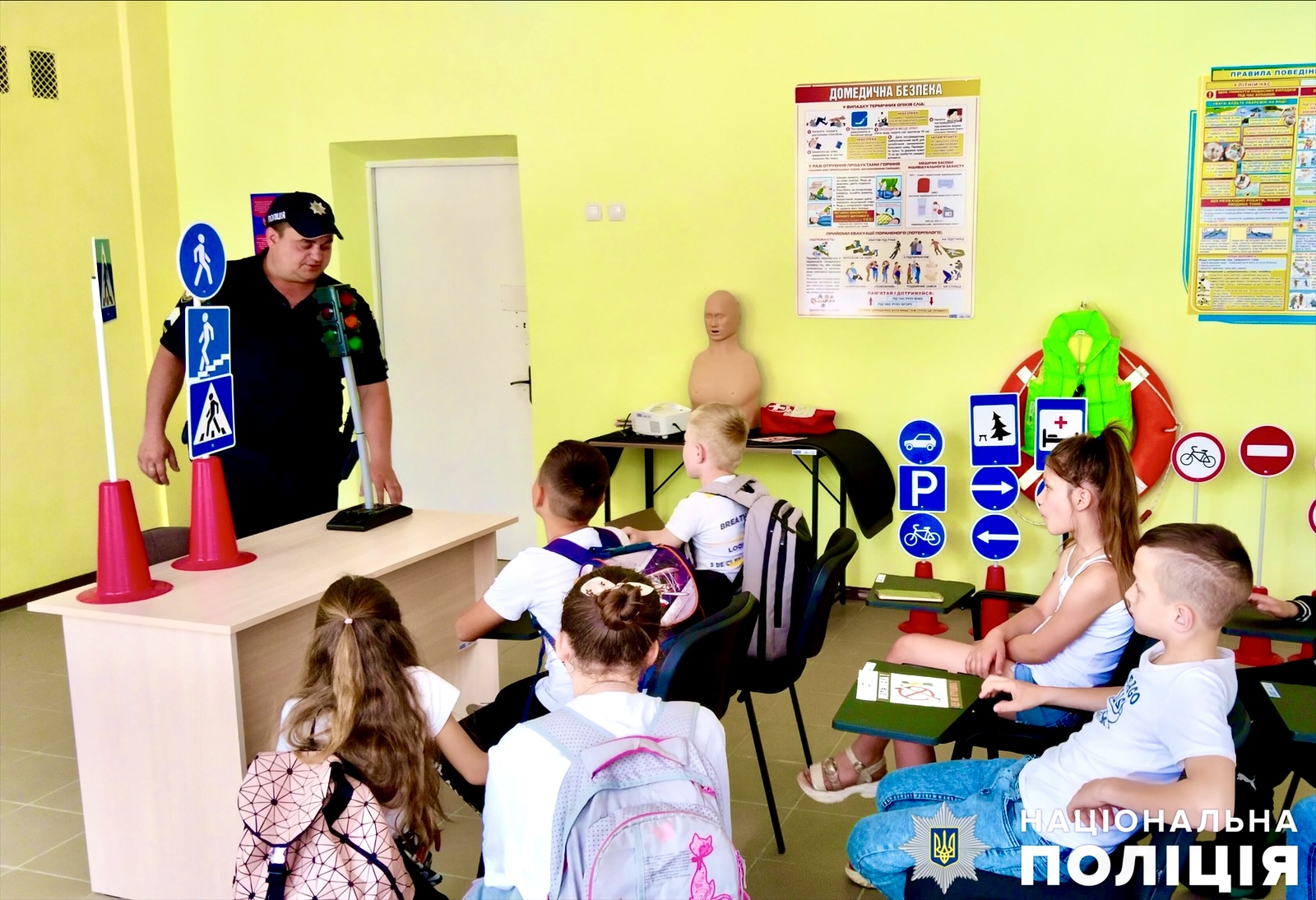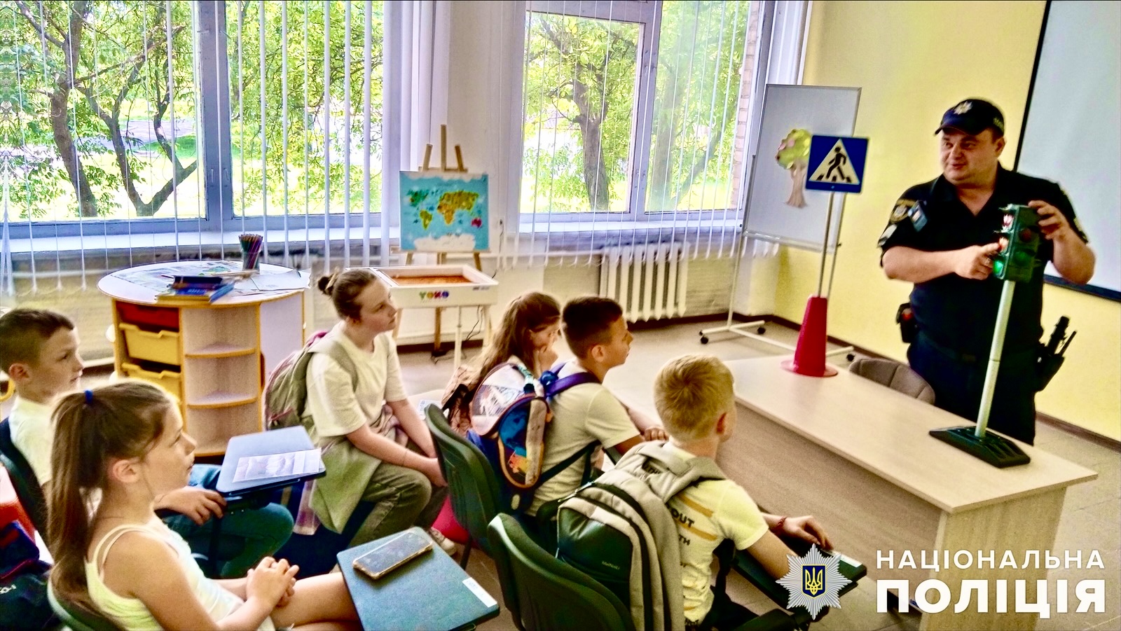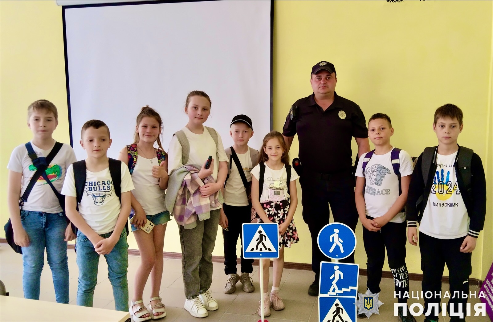 На Первомайщині офіцер служби освітньої безпеки напередодні літніх канікул навчав школярів правилам безпечної поведінки на дорозі