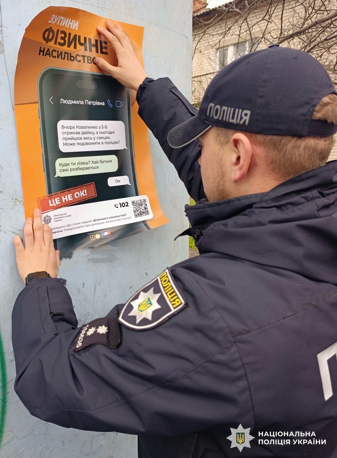 Офіцер роздав мешканцям громади інформаційні буклети та розклеїв у громадських місцях плакати з покроковою інструкцією щодо захисту від дій кривдників і контактами установ, до яких можна звернутися за необхідною допомогою.
