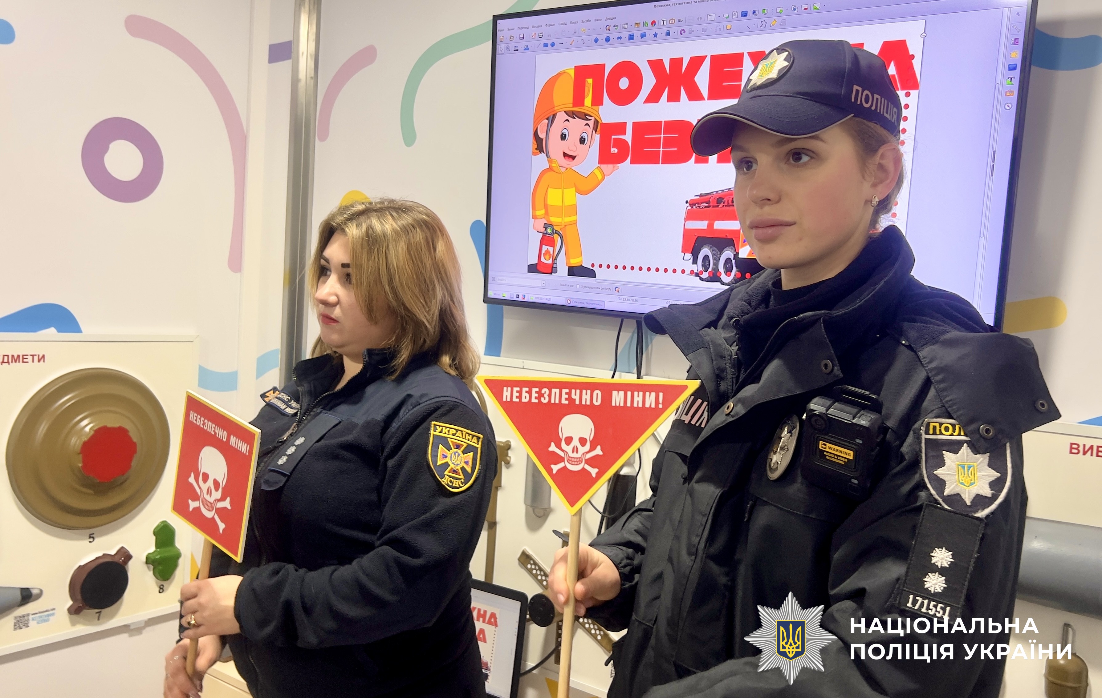 В свою чергу рятувальники розповіли дітям про основи пожежної та мінної безпеки. За допомогою навчального відео, плакатів та макетів продемонстрували як виглядають різні види боєприпасів, пояснили яку загрозу вони несуть, повторили попереджувальні знаки, що вказують на мінну небезпеку. Застерегли від вчинення необдуманих та легковажних вчинків з вибухівкою.