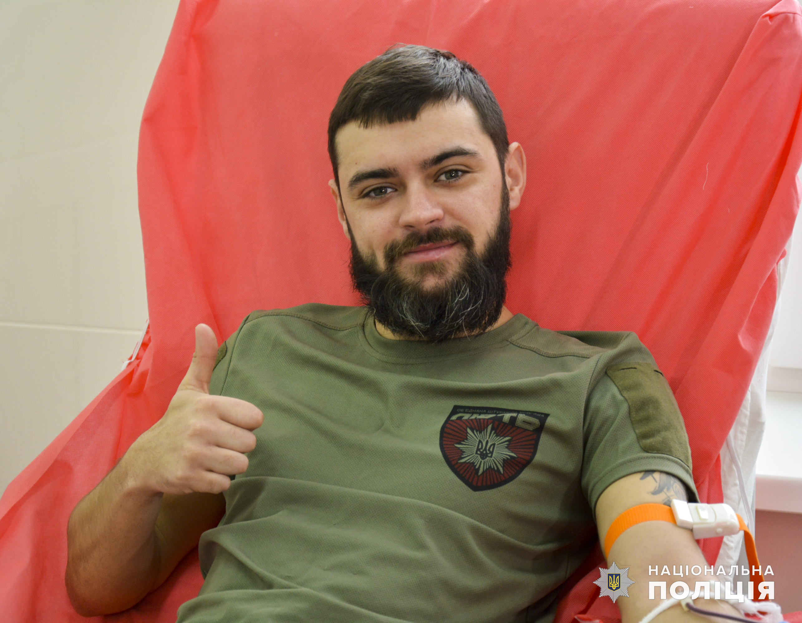 Днями 80 % особового складу підрозділу поліцейських, які нині перебувають на відновленні підрозділу, вкотре добровільно долучилися до здачі донорської крові. Бійці ретельно підготувалися до процедури та пройшли обстеження. Хтось вперше стає донором, але більшість вже з досвідом і на рахунку мають майже 50 донацій.