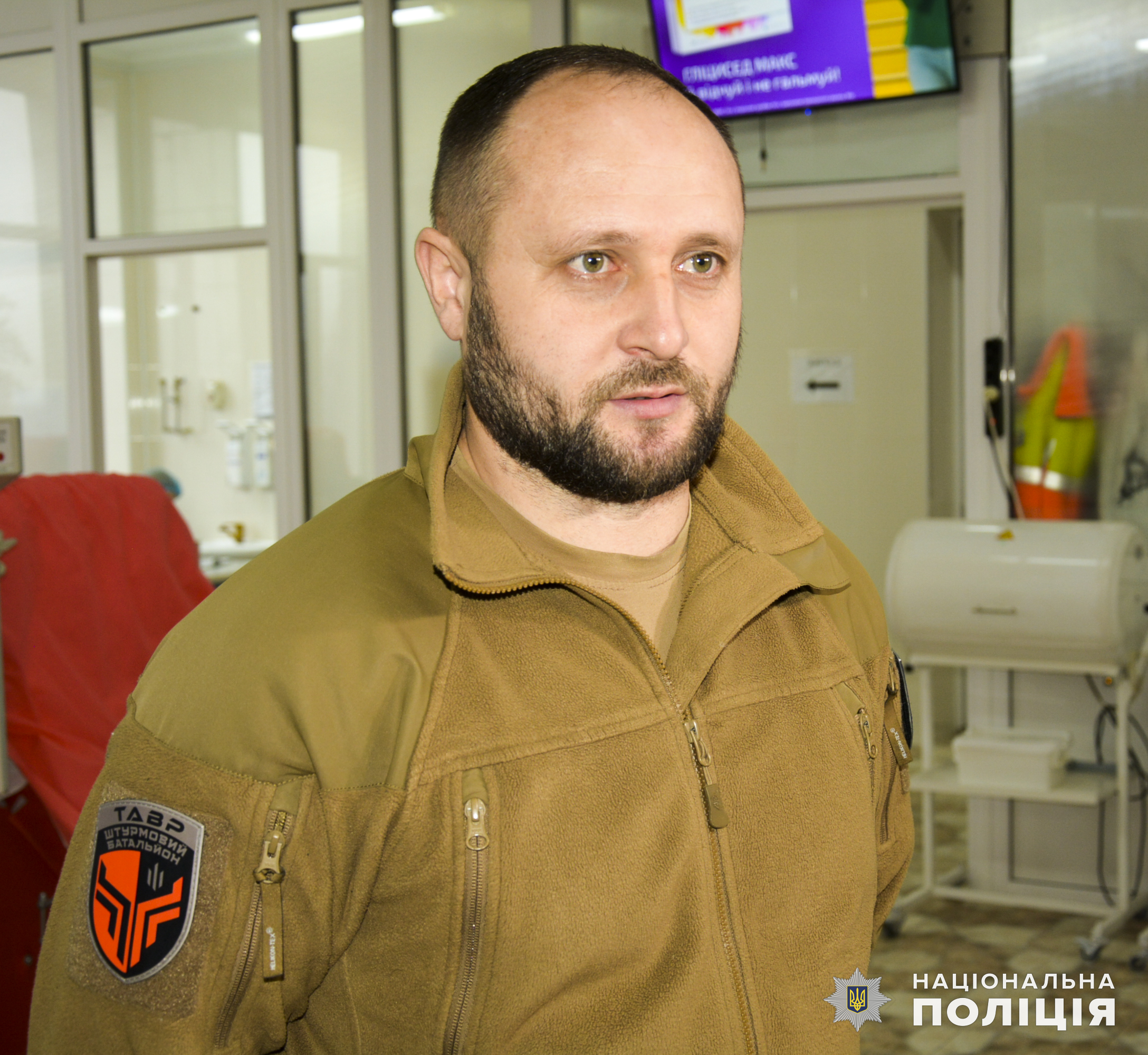 - Кожна краплина крові може стати вирішальною для чийогось життя, - розповідає командир штурмового батальйону ТАВР об’єднаної штурмової бригади Національної поліції України «Лють» Олександр Мхітарян. - Сьогодні діляться своєю кров’ю наші бійці-поліцейські, які також мають і рідкісну четверту (IV) групу крові. Сподіваємося, що допоможемо як цивільним громадянам, які постраждали від наслідків повномасштабної війни з рф, так і захисникам, з якими пліч-о-пліч боронимо країну.