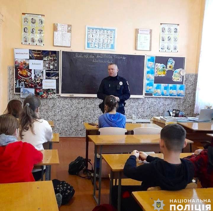 Поліцейський нагадав школярам, що переходити дорогу можна тільки на зелений сигнал світлофора або по пішохідному переходу. В жодному разі не вибігати на дорогу, спочатку впевнитись у відсутності автомобілів і вже потім здійснювати перехід проїзної частини. При цьому наголосив, що проїзна частина це не місце для ігор, а зона підвищеної небезпеки. Також офіцер громади розповів наскільки важливо носити на верхньому одязі світловідбиваючі елементи, щоб бути більш помітними у темну пору доби.