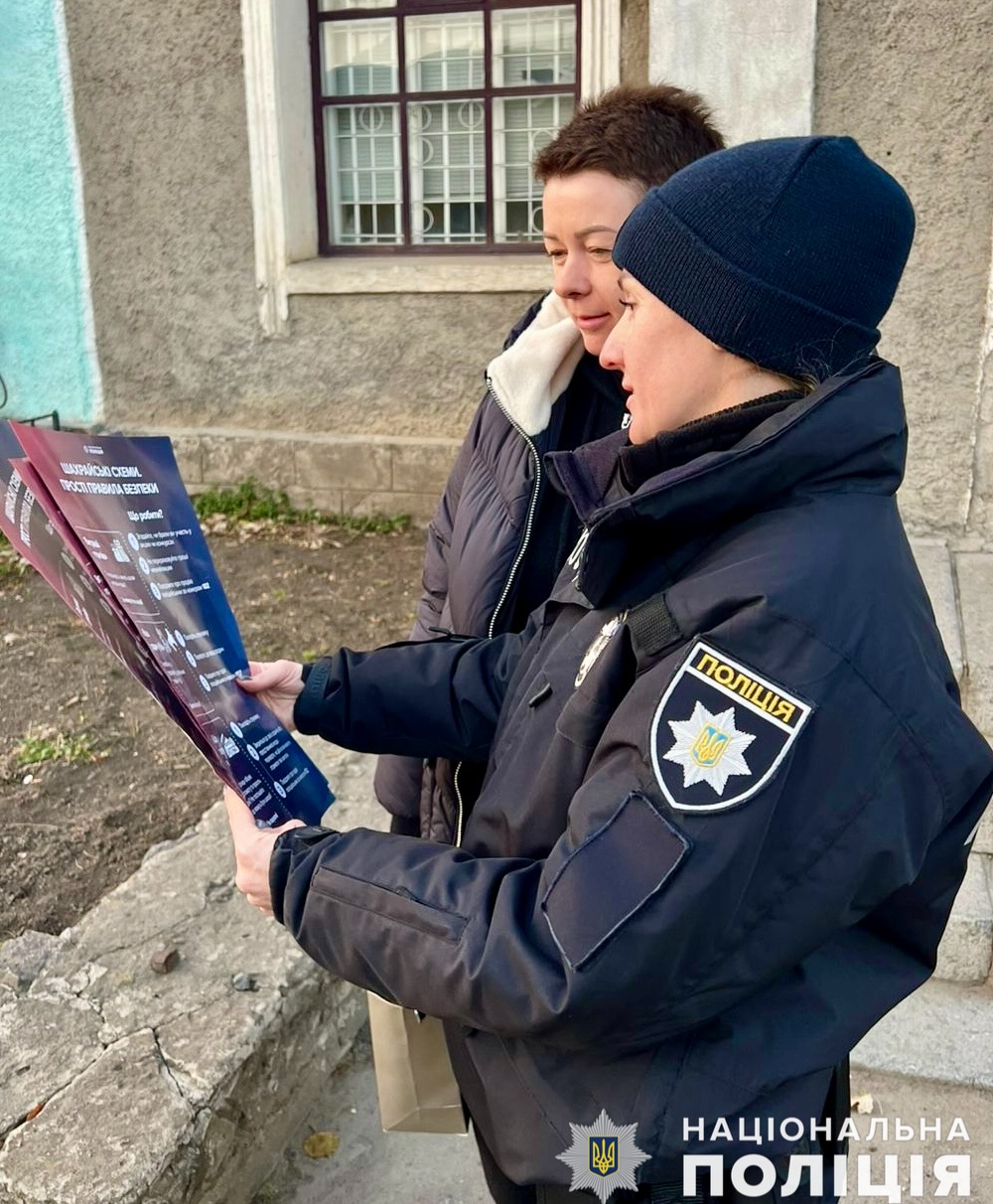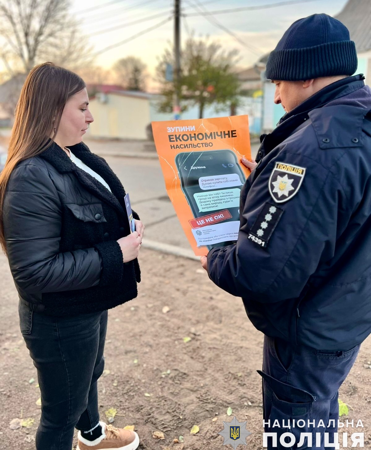 Одночасно поліцейські роздавали мешканцям громади інформаційні буклети, в яких зазначений алгоритм дій протидії кривдникам та до яких органів і установ можна звернутися по допомогу.
