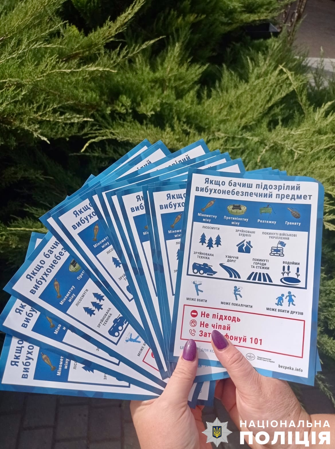 Щоб кожен житель міг самостійно вивчати основні правила мінної безпеки, шериф поліції роздала листівки та памʼятки.