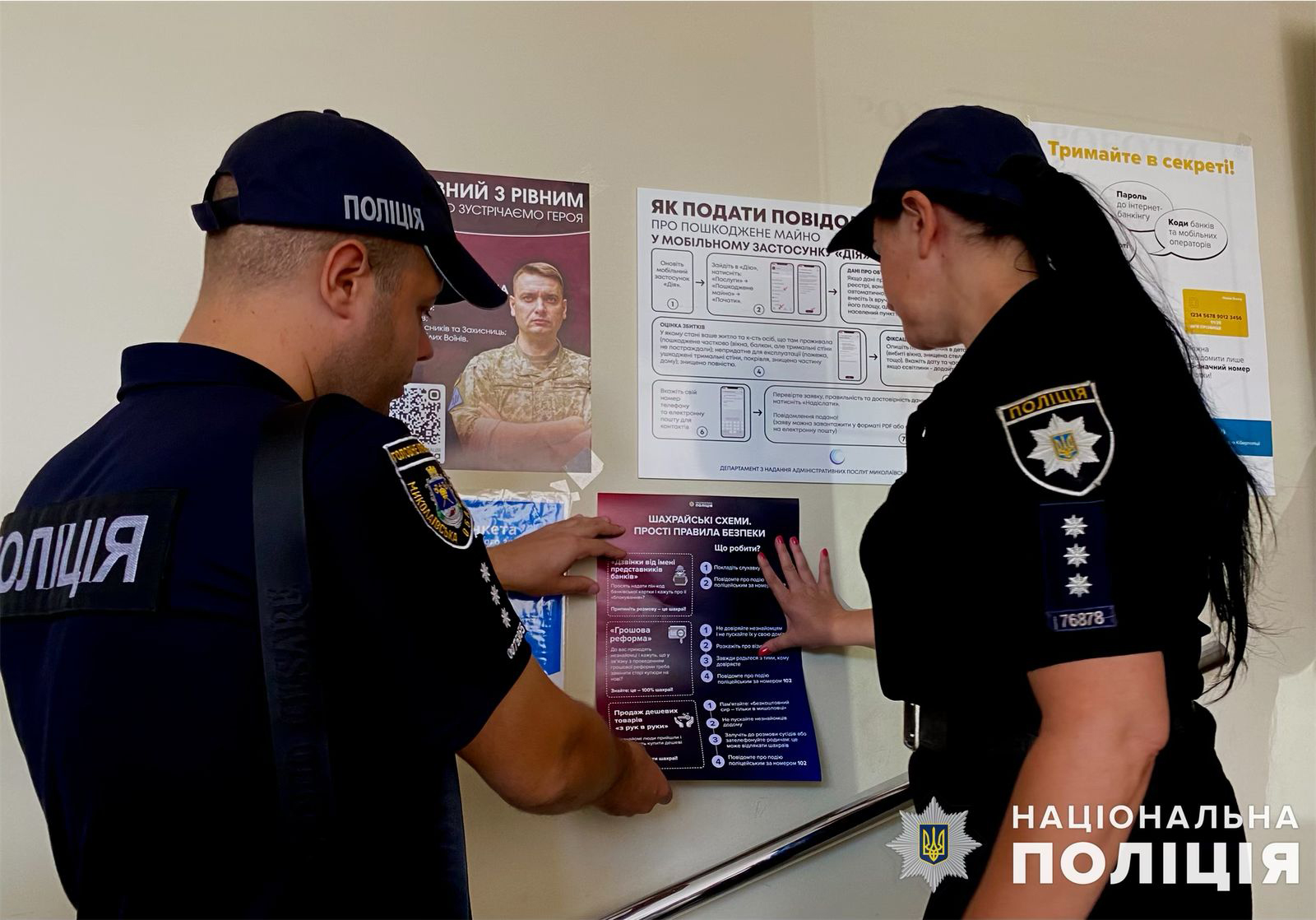 Спілкуючись з місцевими мешканцями поліцейські роздавали листівки, які містять інформацію про поширені способи і схеми шахрайських дій та поради як не бути ошуканими. Аби більше людей дізналися про різновиди шахрайських схем правоохоронці розмістили профілактичні постери у громадських місцях.