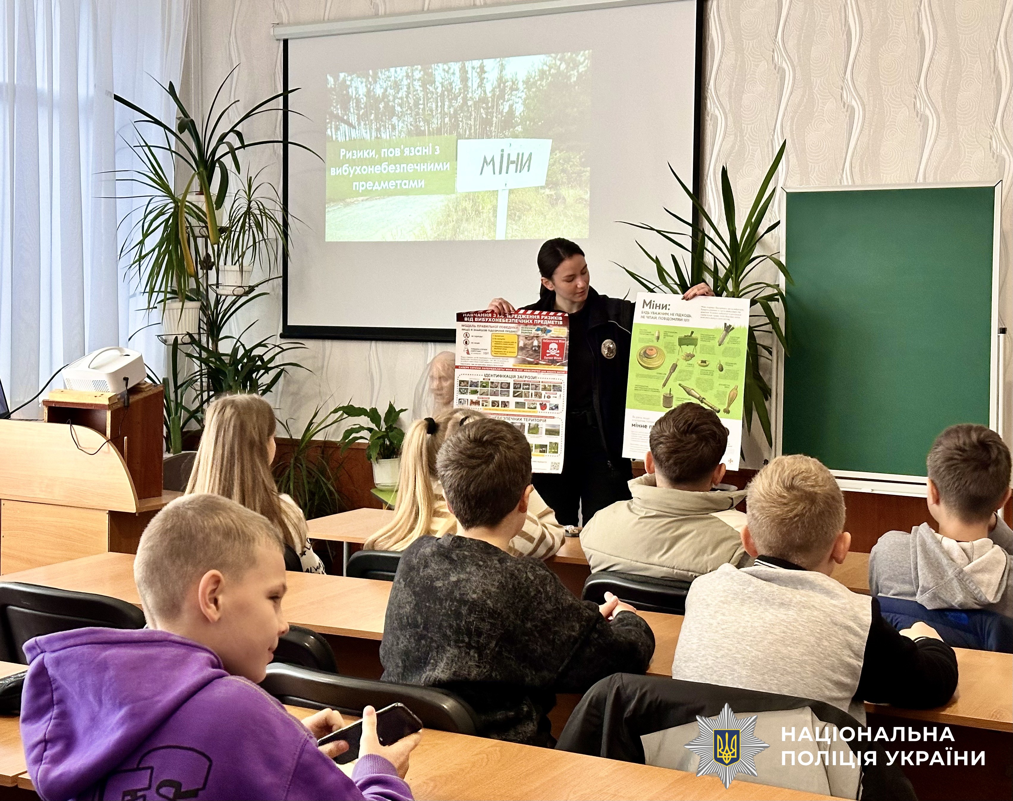 Не підходь і не чіпай: у Первомайську поліцейська навчала ліцеїстів основам мінної безпеки