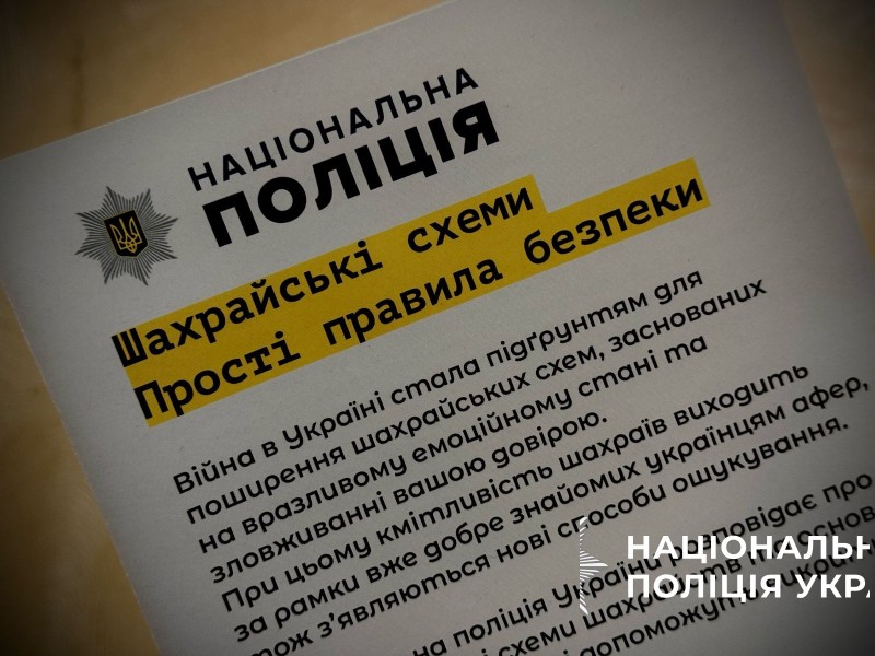 На завершення заходу поліцейський роздав громадянам інформаційні листівки з коротким алгоритмом дій у разі підозри про шахрайські дії.