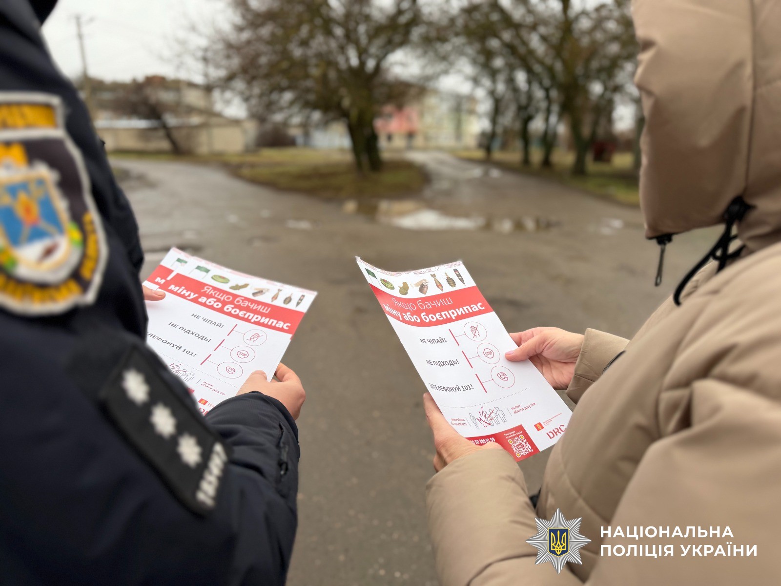 Не ризикуй — повідом про небезпечну знахідку: на Баштанщині поліцейський нагадав жителям правила мінної безпеки
