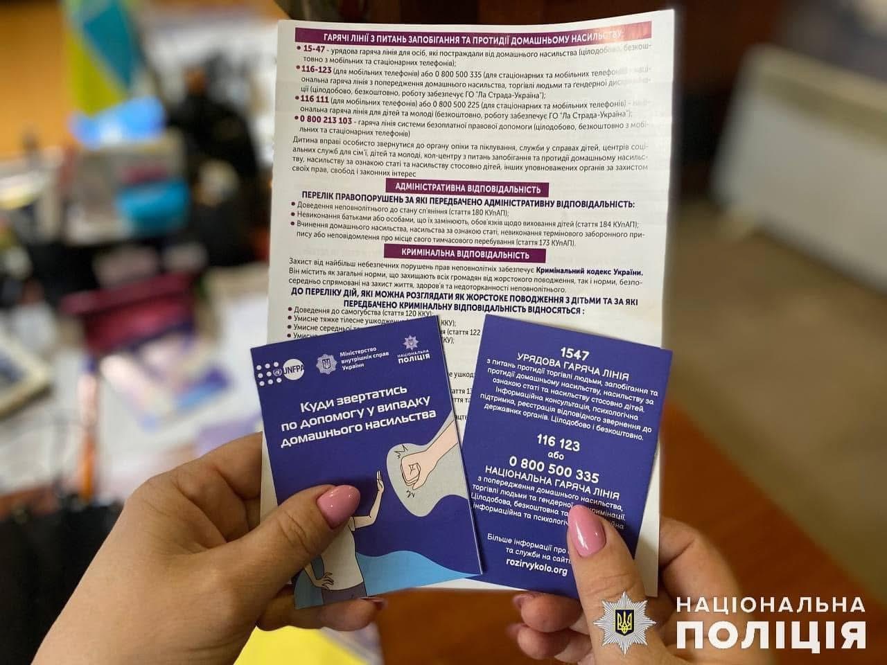 Для того, щоб громадяни були більш обізнані, поліцейський роздав буклети-пам’ятки та розмістив у громадських місцях тематичні постери, де зазначені контакти спеціальних служб, до яких постраждалі можуть звернутися по допомогу.