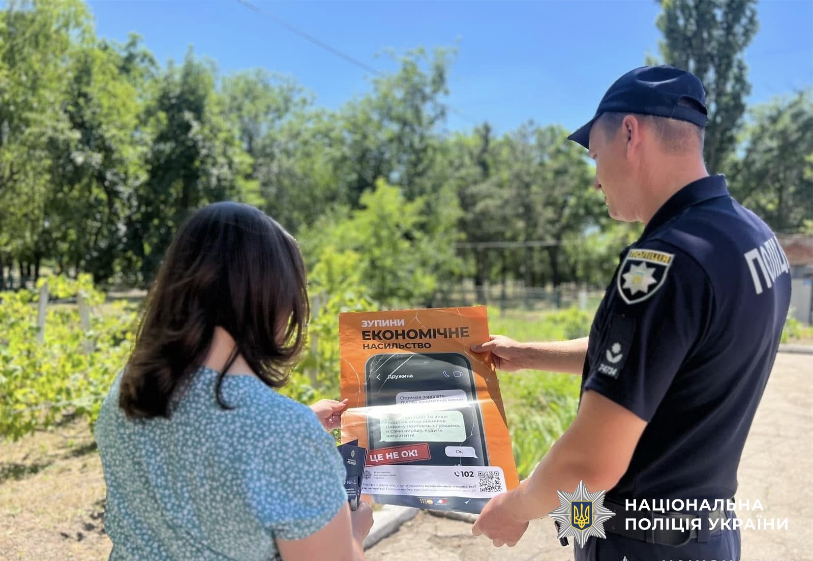 Не варто терпіти кривдника: у Новобузькій громаді поліцейський офіцер роз’яснював жителям як протидіяти домашньому насильству