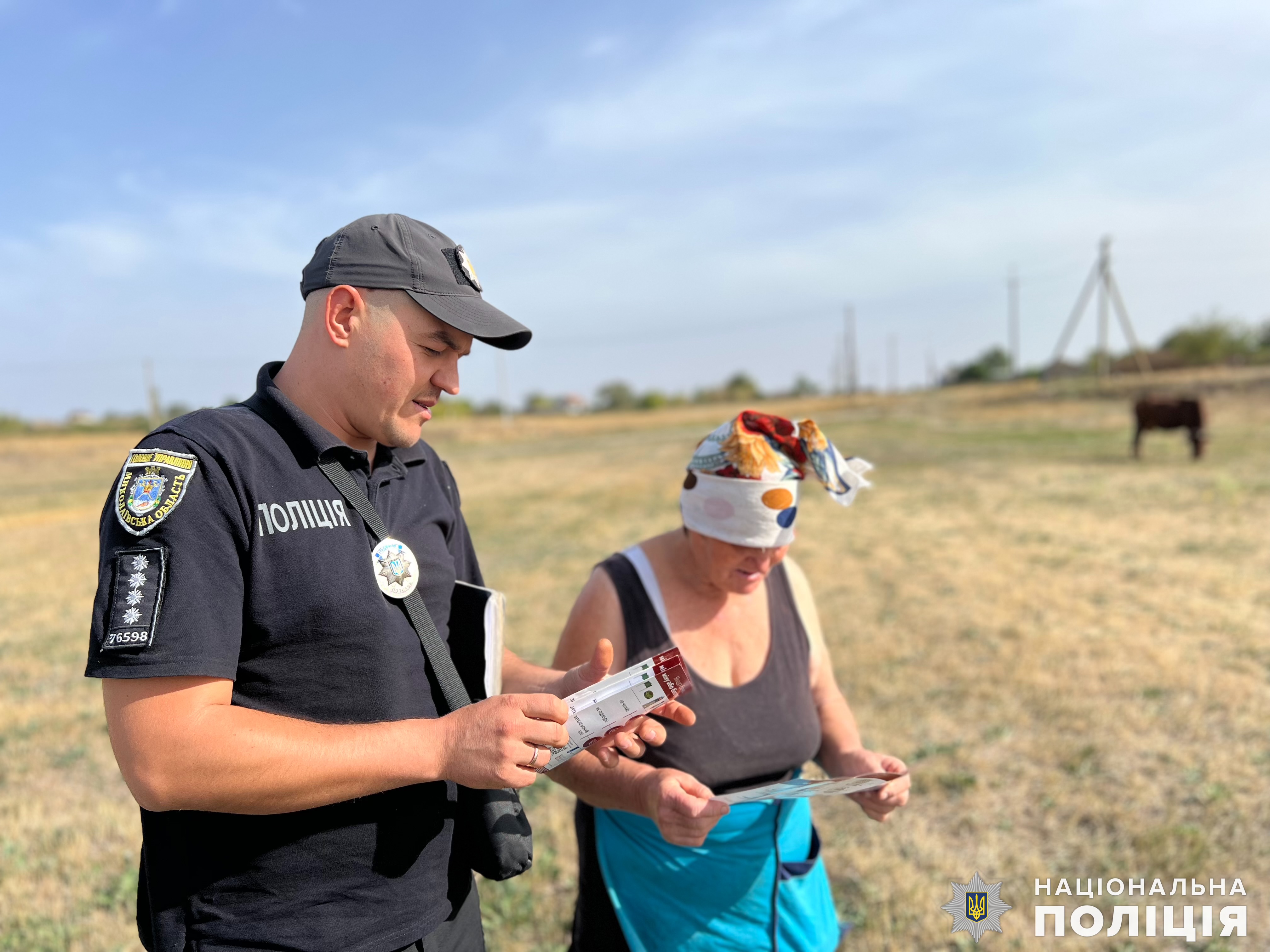 Ювенальні поліцейські разом з шерифом громади провели просвітницьку роботу серед жителів с. Добре Баштанської громади. Навчали селян як діяти, якщо виявили вибухонебезпечний предмет.