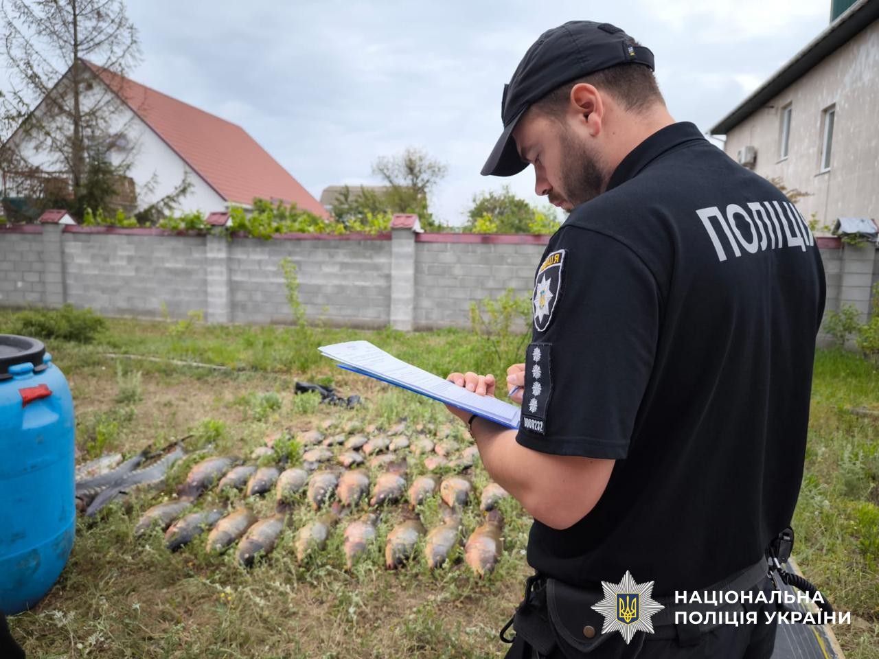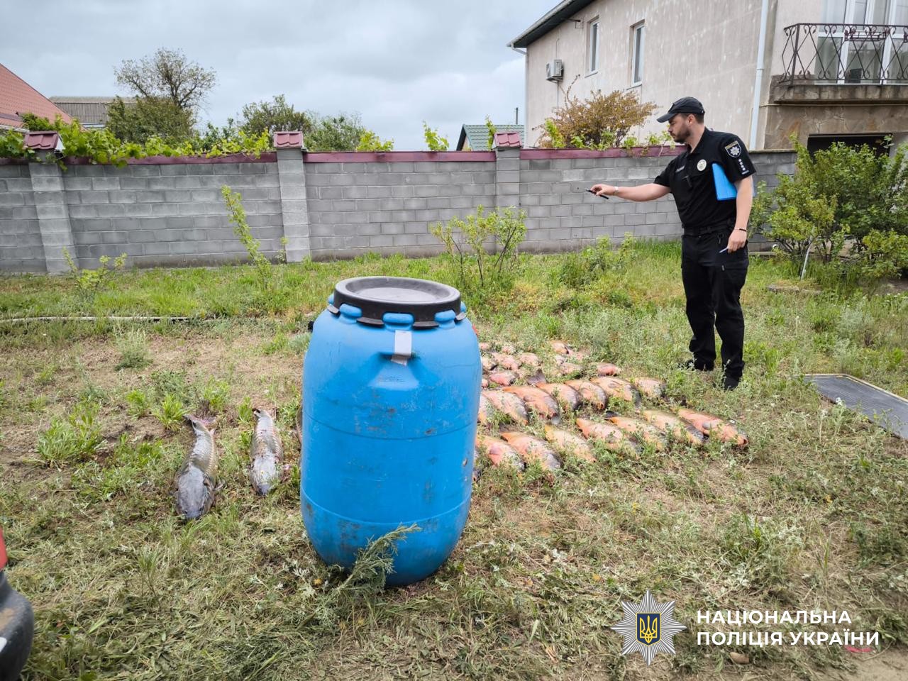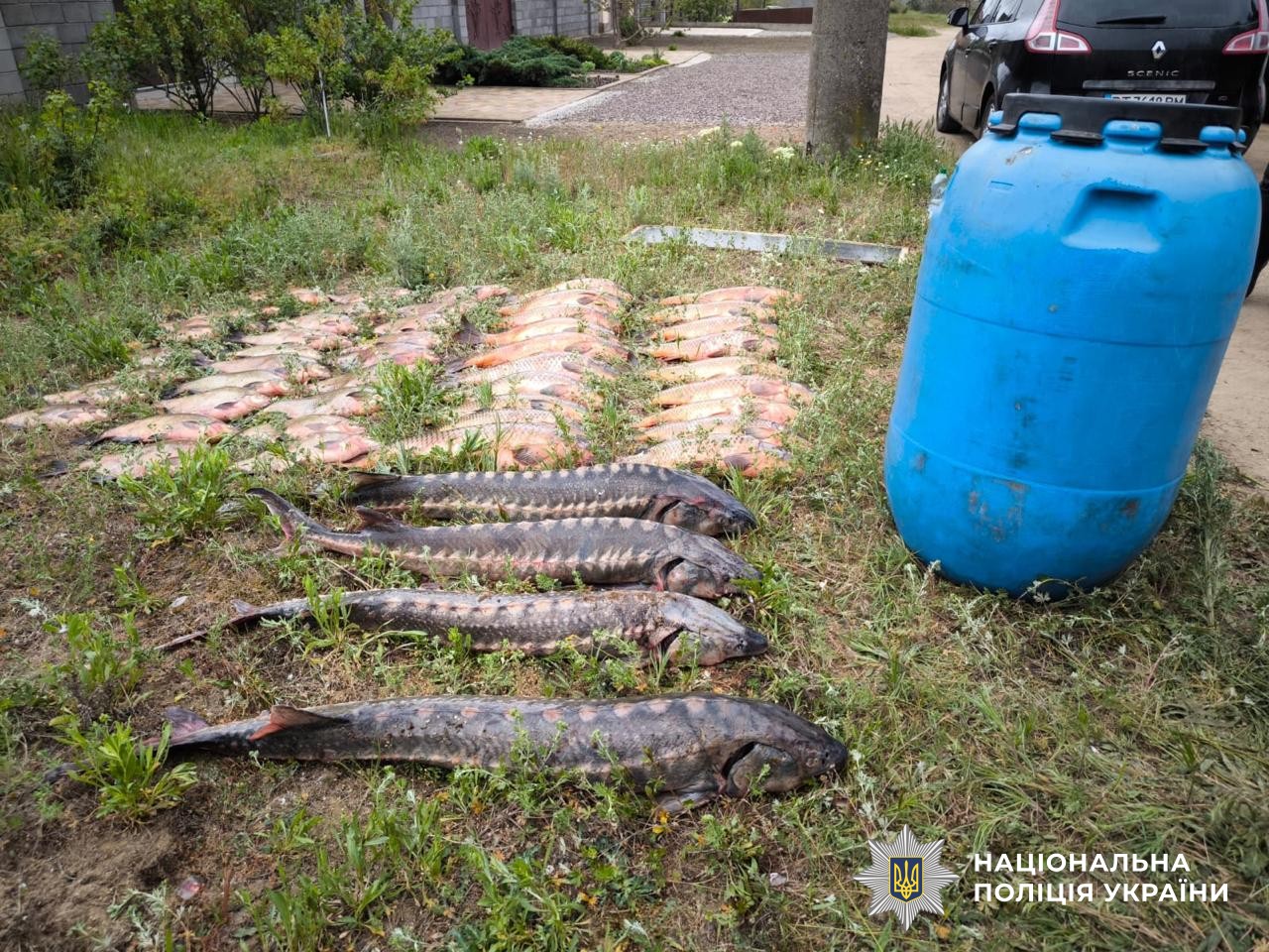 Під час огляду бочки правоохоронці виявили та вилучили 27 лящів, 19 – сазанів та 4 осетра, що занесені до Червоної книги України. Загальна вага вилученого склала понад 180 кілограмів. Вилучену рибу передали на відповідальне зберігання рибоохоронному господарству.