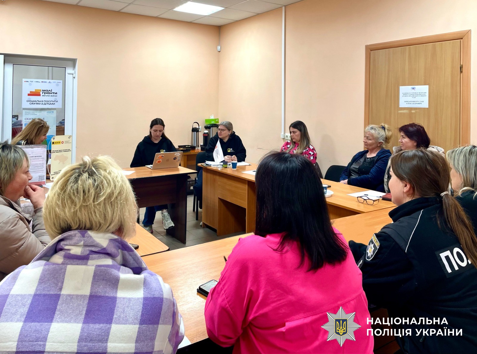Інспекторка ювенальної превенції Первомайського райвідділу поліції Ганна Іщенко разом із присутніми обговорили механізми швидкого реагування на виклики, підтримку постраждалих від насильства за ознакою статі, спільні освітні проєкти для мешканців громади.