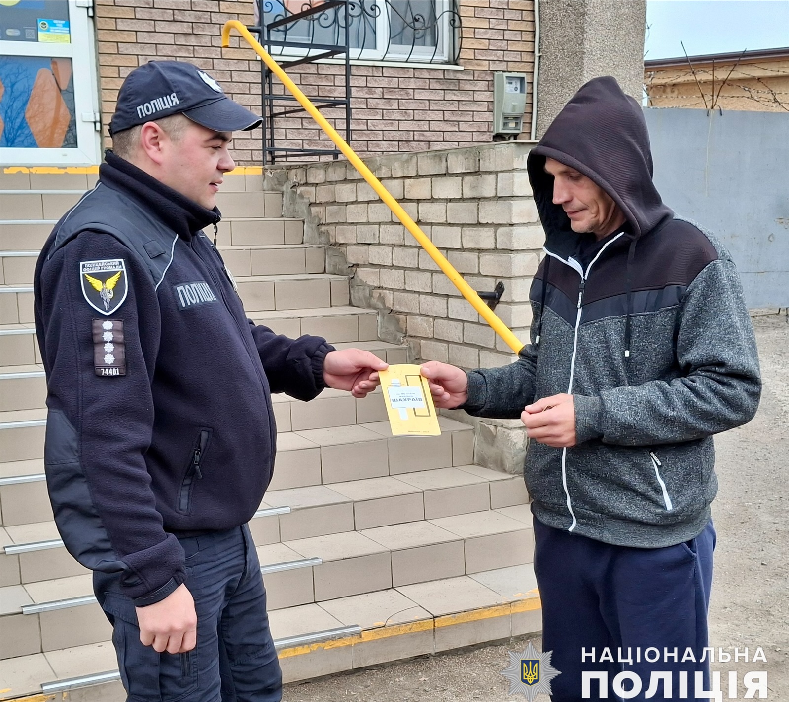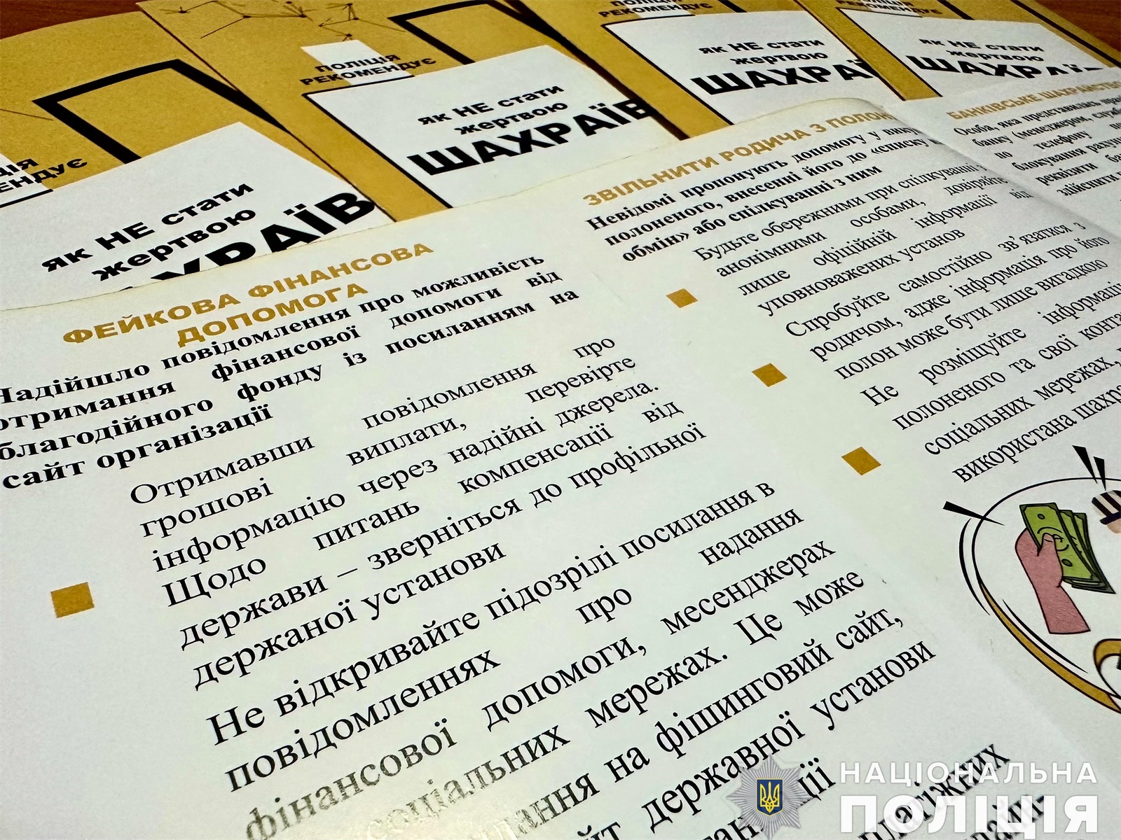 Правоохоронець пояснив, як розпізнати аферистів і захистити свої кошти, роздав інформаційні листівки з ключовими правилами безпеки: