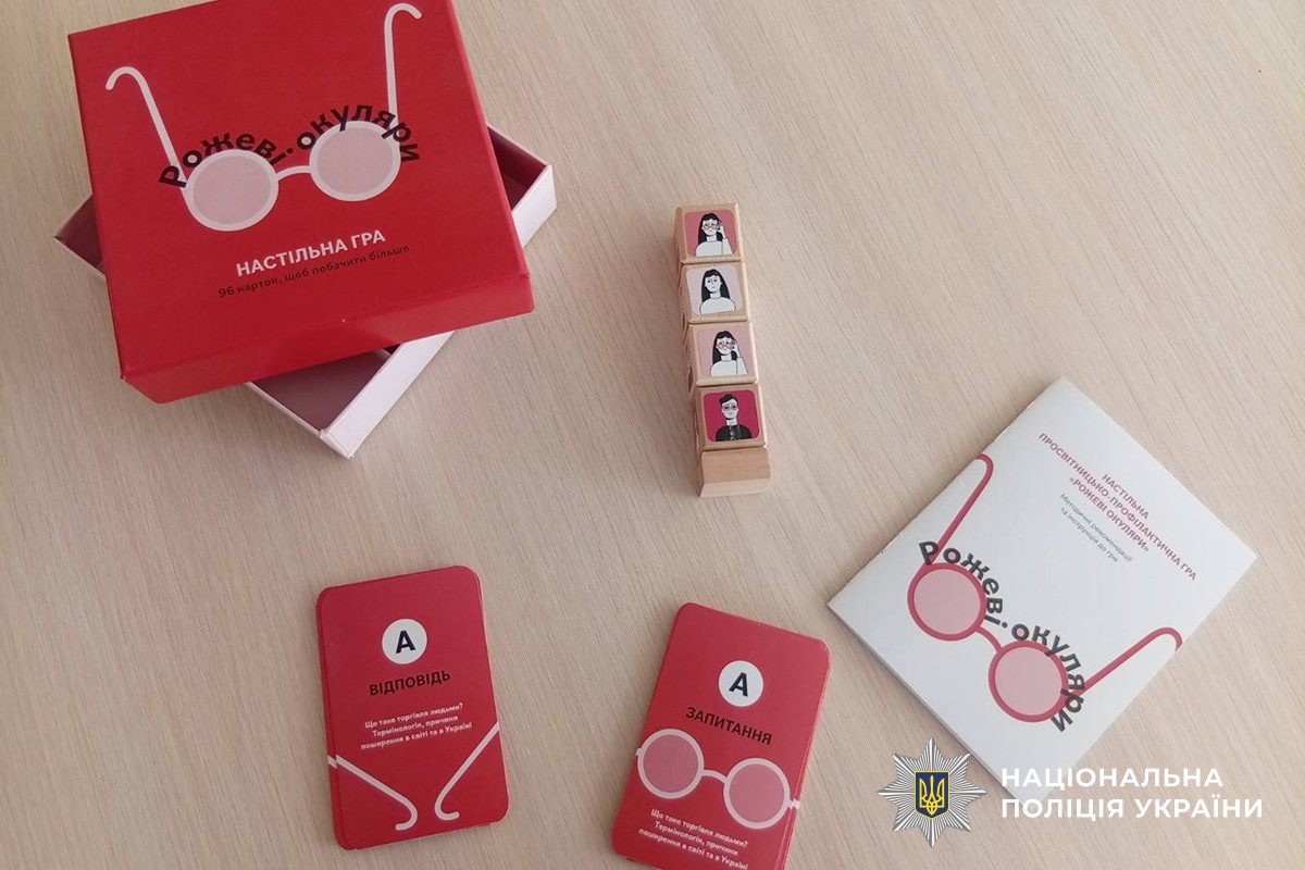 Щоб зацікавити підлітків та стимулювати їх краще засвоїти матеріал, поліцейська розпочала захід з настільної просвітницько-профілактичної гри "Рожеві окуляри". У ході гри поліцейська ознайомила дітей із поняттям торгівлі людьми та алгоритмом дій, як не стати її жертвою. Учні вчилися розпізнавати прийнятну та неприйнятну поведінку, види насильства, методи його подолання та попередження.
