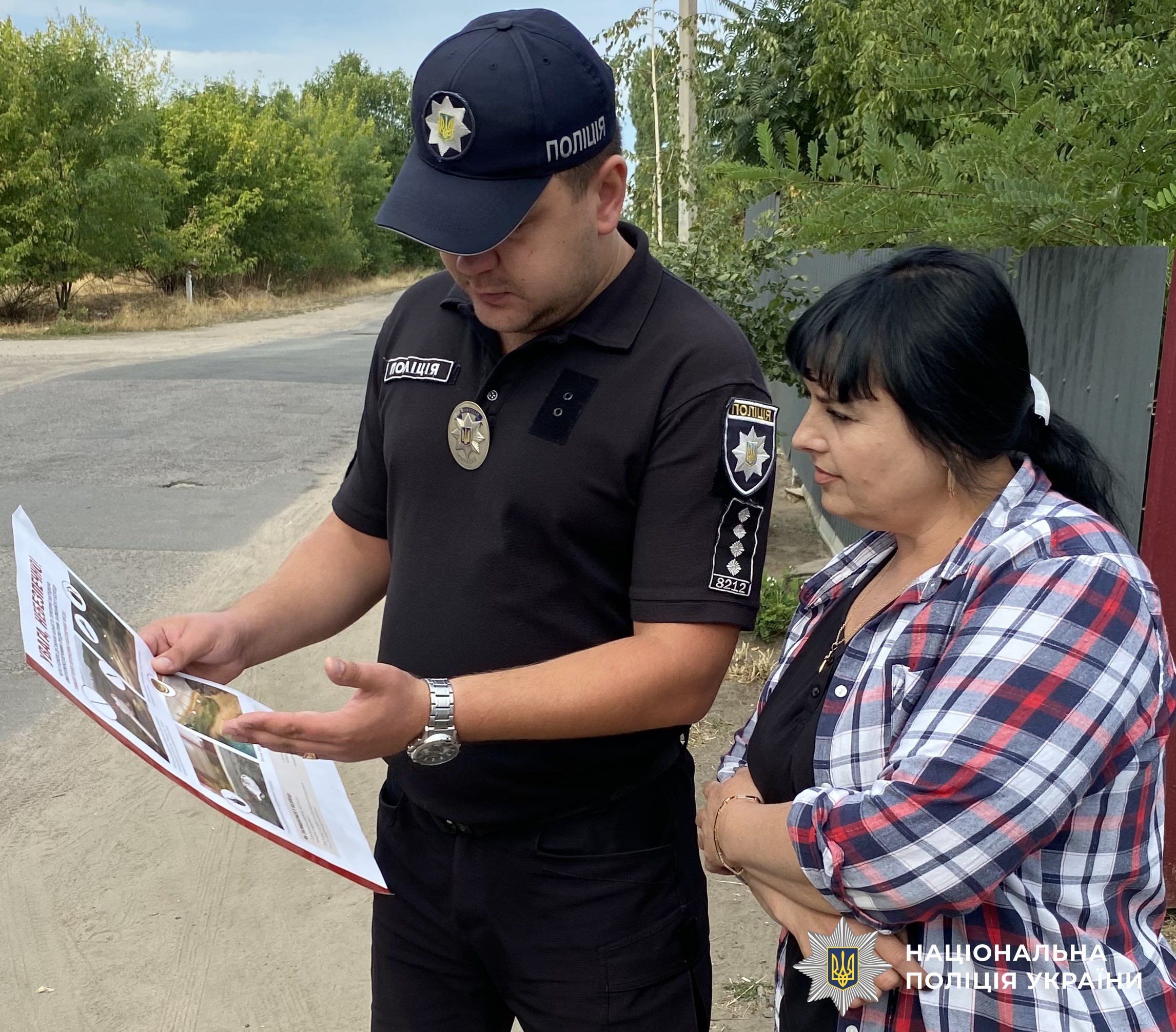 Обізнаний - значить захищений: на Первомайщині поліцейський офіцер громади навчав місцевих мешканців правил мінної безпеки